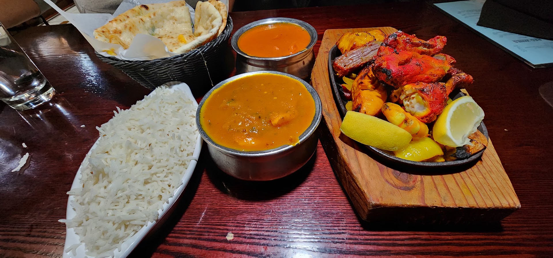 Read moreI don't recommend this place. We often eat at Indian restaurants in the Sacramento and Bay areas, and I have never given a review before, but I had to review this place because we were overall pretty disappointed. While the vegetable samosas were tasty and the paneer pakora was okay, the Nepali samosas had no spinach and really no flavor. Thank goodness for the tamarind sauce to add some taste. (Yes, the menu in the restaurant says it includes spinach). The worst thing about this place is the small portions of food in each main course dish compared to the prices. We usually eat family style at Indian restaurants, and there are always generous plates, bowls, or pots of each dish. Not here. The next disappointing thing was the goat cheese Naan. Yes, there was a thin smeer of goat cheese, but there was also cheddar cheese, and this made the Naan oily and gave it the wrong flavor. To be fair, the chicken vindaloo was good, and admittedly, the tandoori mixed grill had very good flavor, but the lamb in it was tough and chewy. Sadly, the chicken tikka masala was just passable. I just can't stress enough, though, that the portions are incredibly small compared to the prices of each dish. We took two pictures of the main course, hoping to show the relative size of the "pots" and the platter. (We just went to a Thai place in Davis and were pleasantly pleased by the large, full plates and...