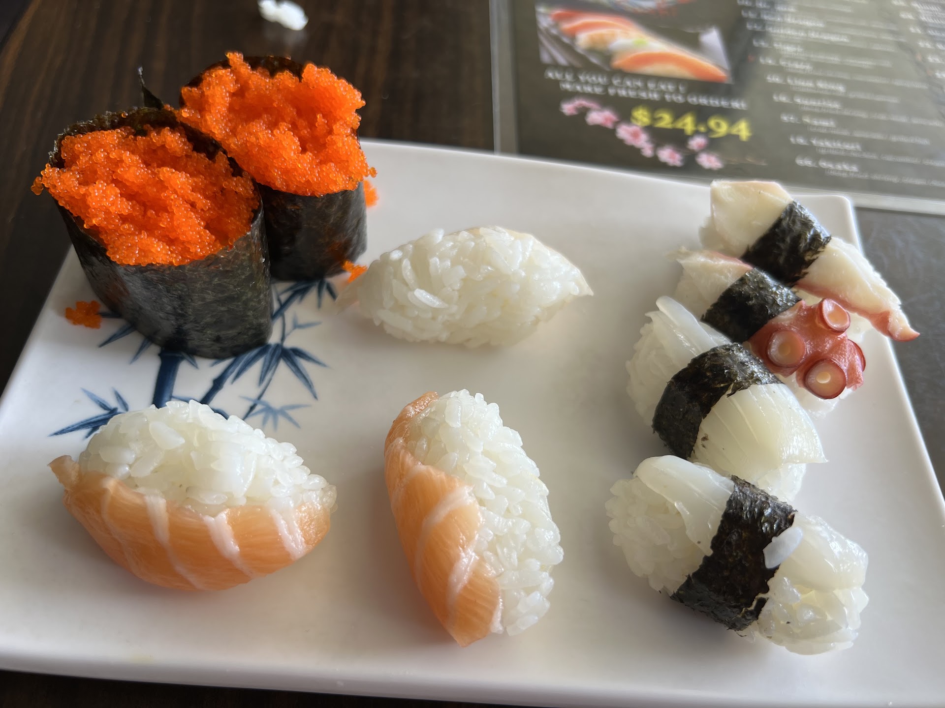 Things I did like: I liked the ease of the online ordering system. The sushi was also very inexpensive, which I should have realized would mean low quality. My two favorite places in town were closed for the holiday, so I tried something new and was...