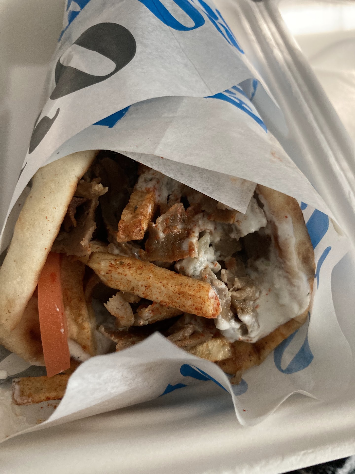 Beef/Lamb pita- the meat was good. Soft, moist and flavorful. The pita itself was warm and soft unlike some other places. There’s fries, tzatziki sauce, tomatoes and onions. I wished they had other ingredients without charging extra. It needed a crunchy element to it as it’s all a little too moist and soggy. The fries were disappointing.