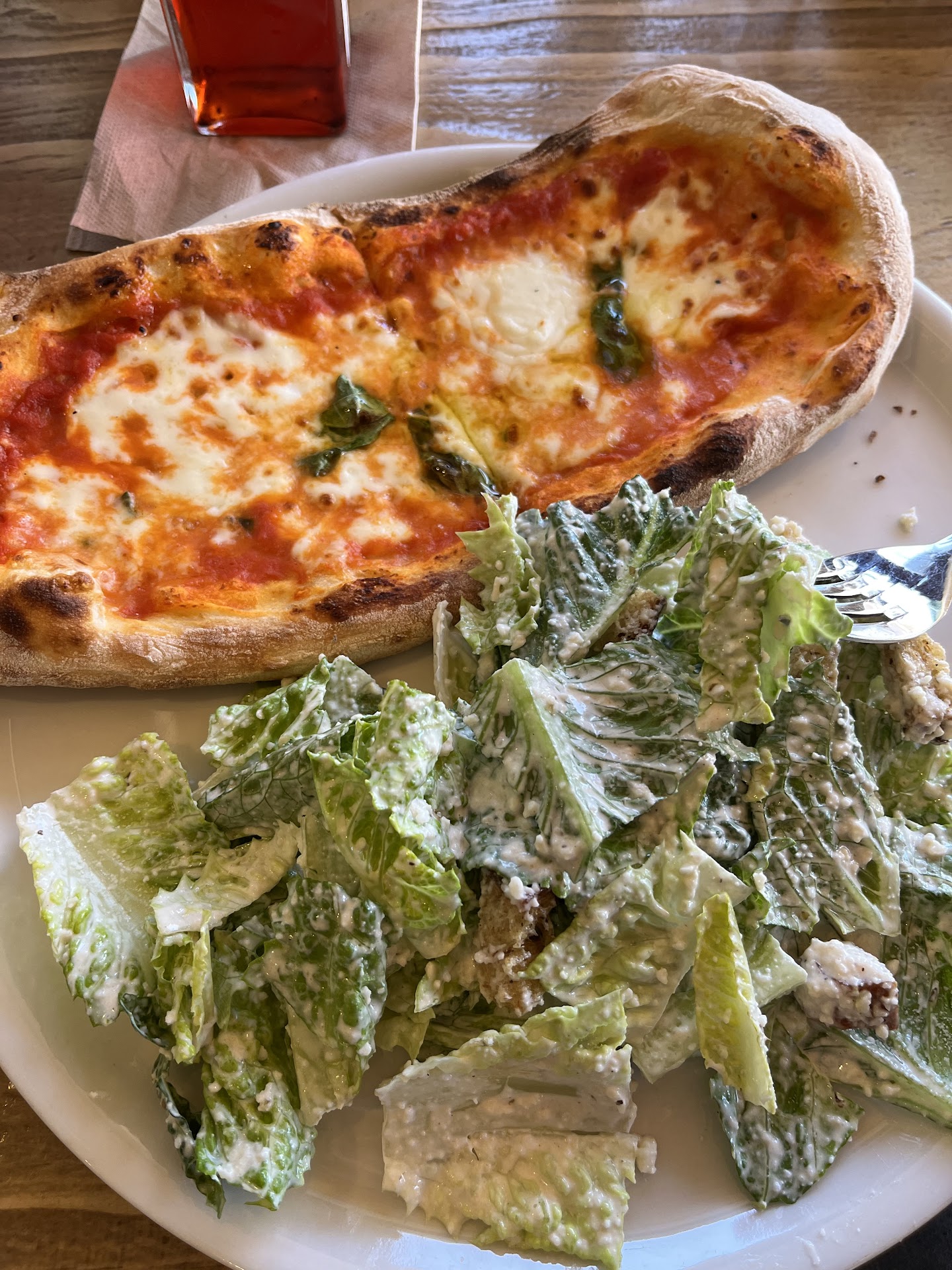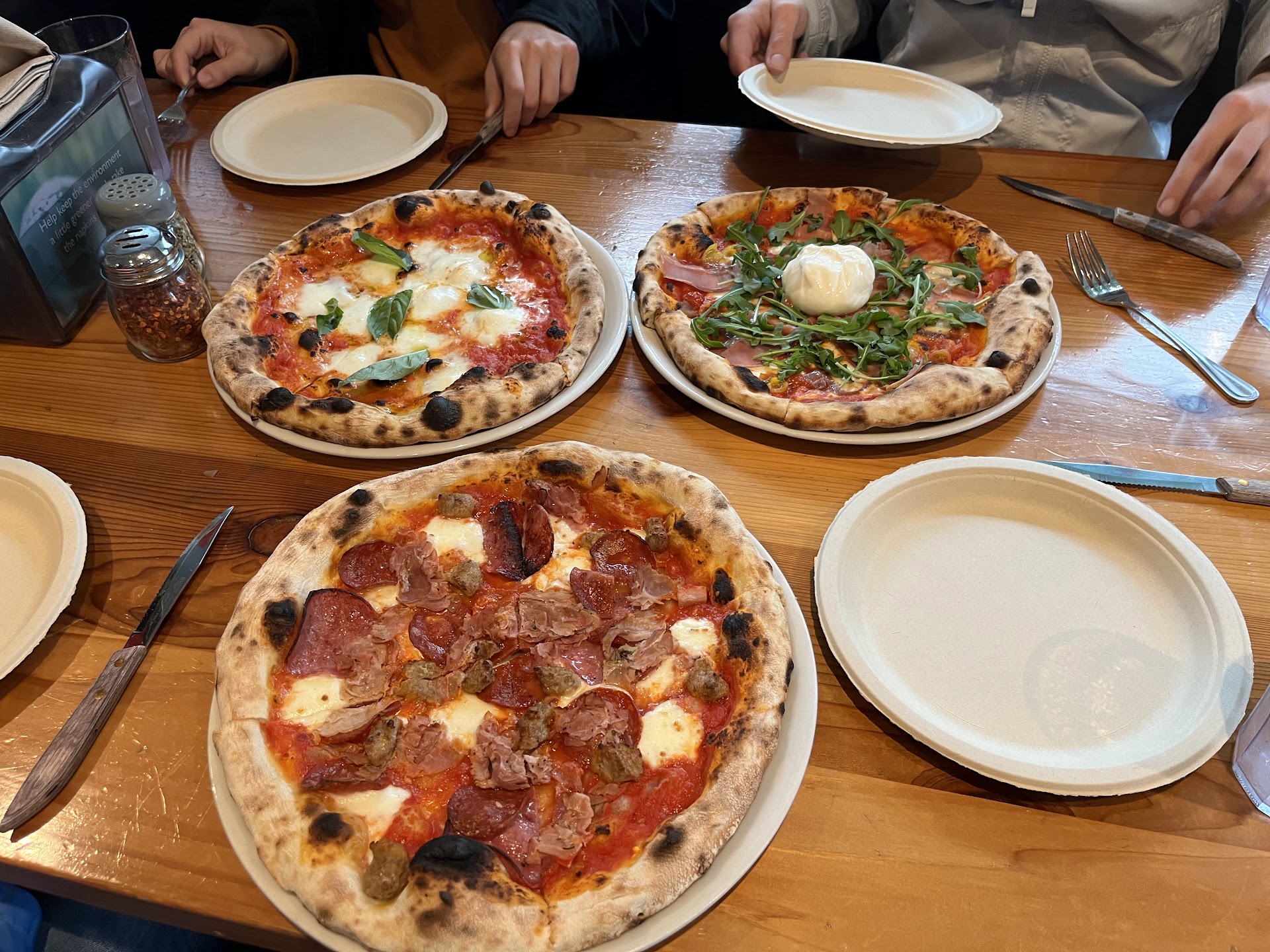 Read moreThe pizza was decent, if a little underwhelming for the price. Everything was very inconsistent. The pizzas were all cut into 4 slices each, but some of the slices were twice as big as the others. They were out of plates and forks when we were served salad and we had to get them ourselves after the wait staff promised to get them twice. They gave us numbers to put on our tables, but also called out our number over the PA to pick up our food at the counter, only to find that most of our order was not ready, what was ready was not correct, and they were going to bring it out to us. The pasta add ons were tiny for the price.