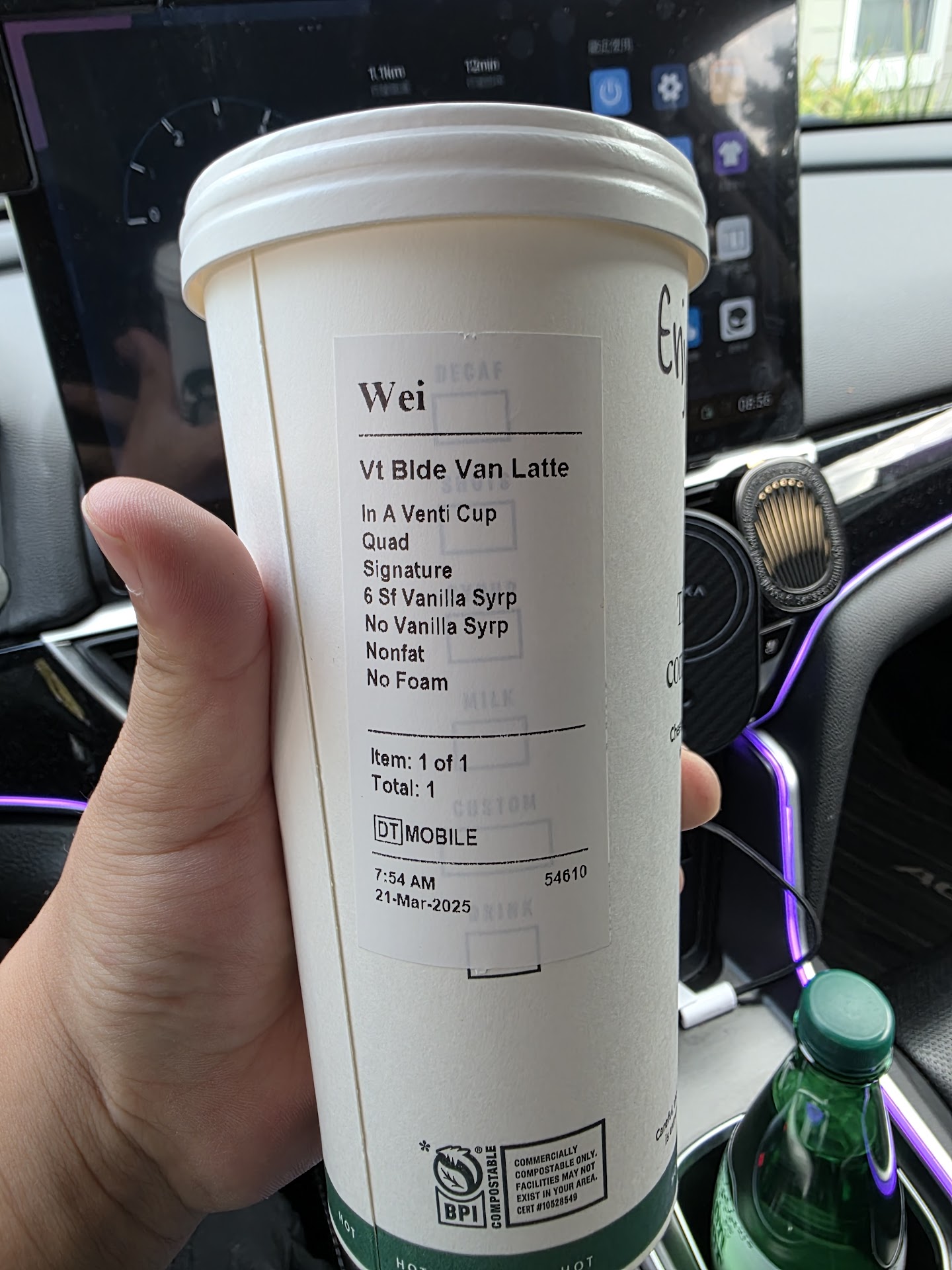 Read moreWe are on a road trip so we have stopped at many Starbucks on our 11 days journey so far. We always get the same drinks so we know if something is different about one. For some reason this last stop at this location made us both say “wow my latte is soooo good”. We only say that we go to small coffee shops. Never at Starbucks. Yesterday I got a latte with an extra shot and it wasn’t memorable like this regular latte. And then Leo at the drive through hands us a cup with such a sweet msg that means a lot to us since we are driving with a injured pet and driving is already more dangerous than flying so all good vibes are welcome. The had written msg said “Good luck with your thing today!!!” Cute! Also yesterday I stopped at one for egg bites and heard something about a kale egg bite that I did not see on the menu but didn’t get clarification from the barista so didn’t order. Today Leo explained it to us and I am so glad I tried it. So good! Anyway I just wanted to tell you you are doing...