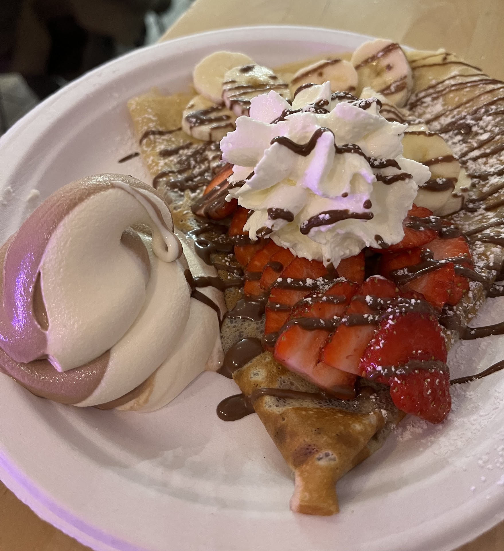 I appreciate the shaved ice but when mixed with the frozen custard, which is delicious and creamy, it really waters down the flavor I feel. So I may never get the shaved ice here but I will come back for the custard and maybe their other options such as crepes!