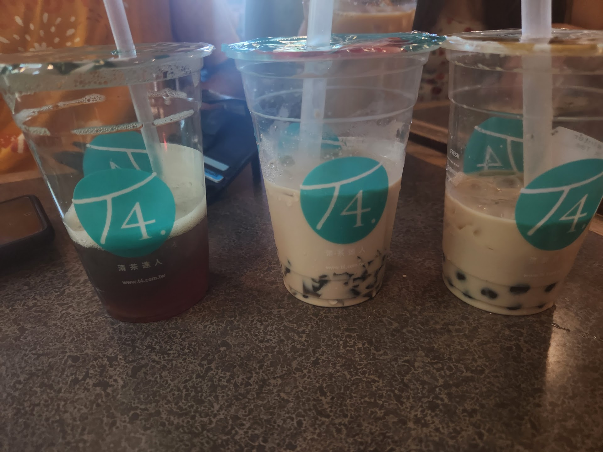 I ordered the specialty drink of Panda Milk Tea and it cost $6.10 (with tax). The pros of T4: a variety of options, especially when it comes to customizing the drinks. I was pleasantly surprised that opting for less ice did not cost extra. Nice interior decorations and choice of indoor or outdoor seating. Now, the cons: unfortunately, when preparing my drink, staff seemed to place the cup with too much force into the machine that attaches the lid. As a result, the tea splashed out and the machine stopped working. I watched staff pick plastic bits off from around the rim of the cup while the exterior of this offending cup was covered with sticky tea. I assumed that the drink might be remade at this point or transferred to a different cup but, instead, staff scooped ice into the same cup to make up for the tea spilled and announced the order was ready. As can be seen in my photo (without the straw), some tea still dripped down the sides of the cup. I see this as an unfortunate accident and I, in no way, consider the staff as being at fault for the machine malfunction. However, I was a bit taken back by their reaction when I asked what I think is a fair question of whether my drink was the one that was dropped. Though they did ask whether I wanted the drink to be remade, they were rather defensive and said that it didn't really "drop," pointedly asking me if there was an issue. I understand this was a difficult situation with the machine breaking down but I would rather not be put in a position where I am treated as unreasonable for asking about what I noticed. I'm afraid my experience was rather soured by this incident and I will go to a different place for bubble tea, especially considering the high price here for a merely...