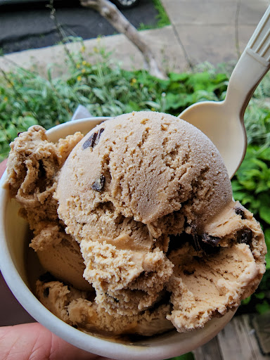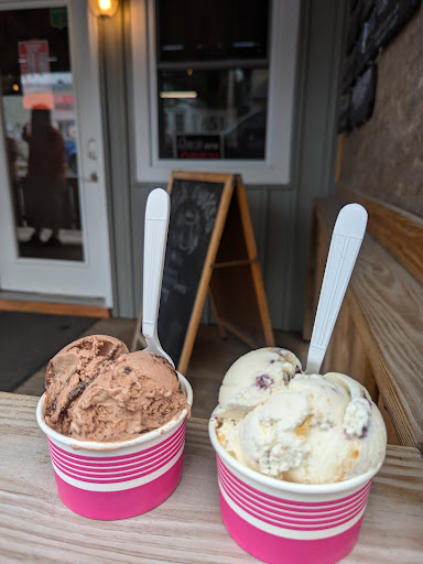 Bring cash!! So many businesses in this town are cash or check so bring cash and you'll avoid the ATM fees. Now, onto the important....I got the BLUEBERRY MUFFIN flavor and my daughter got the Coal Miner, but I'm writing mine in bold because it's that good 🥳 Hers was great too honestly, but I really dig unique flavor combos and this was such a treat. The decadent, smooth blueberry ice cream was ultra creamy and had thick ribbons of blueberry jam and graham cracker. This is 100% in my top 3 for all time best ice cream. It is sort of a non descriptive storefront (I don't remember seeing the name out front even🤔) and not much inside for decoration but the ice cream makes up for aesthetics. And there are a few tables outside on the covered porch for when the kiddos...