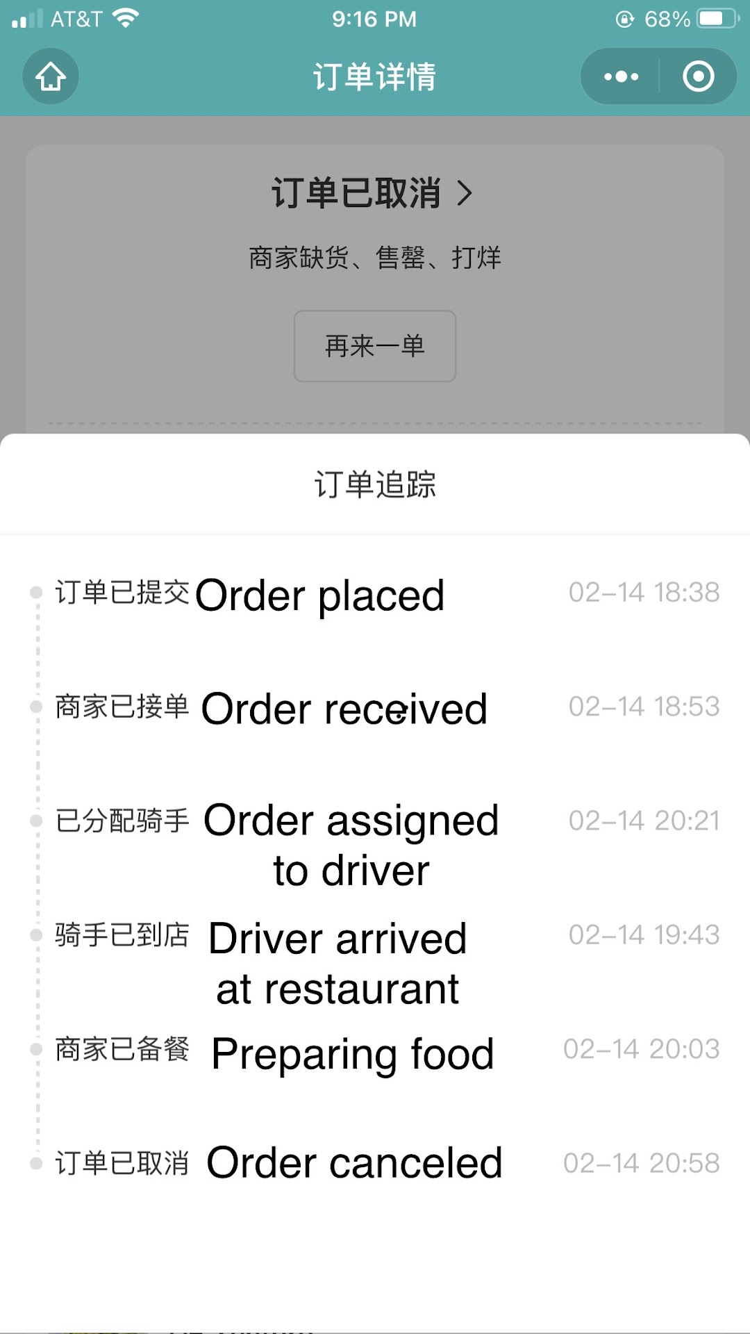 And then we wait. Pic. 1 is a timeline of our waiting from placing the order till the order was cancelled by Xiaocunās stuff. That cancellation is after our call with Xiaocun, and the stuff said Zen Toro has already called us because they couldnāt make it. The truth is, me and my husband literally stared at our phones during the whole two hours of waiting, and we swear there wasnāt a single second Zen Toro ever called or messaged. Instead, without any notification, we stared at the dynamic map of the driver delivering food all around Davis, faking to be waiting for our food.