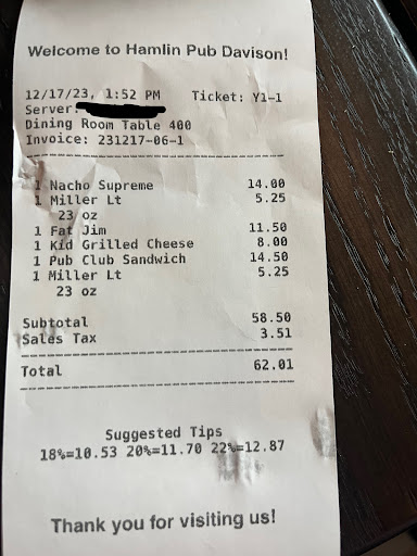 Read moreAs a Davison local I was very excited for the opening of the new Hamlin Pub and heard very good things about this place. My experince thus far has been anything but good. I will say that the atmosphere and service is really good and everyone is very friendly. The food is where my issue lies. In my two visits thus far I have ordered the wings, which are very mid and nothing special. Not thrilled about getting a full order of wings and being charged extra to have two sauces instead of 1. My daughter oreder the kids mac n cheese and was given Kraft clearly out of the box. They have two other dishes with Cavatappi pasta on the menu. How hard is it to give a kid a small portion of that with cheese sauce? I would much rather pay the price for that instead of box Kraft mac n cheese. I am going to continue trying more items on the menu, but my expectations are set very low at this point. Seems like a great spot to get a beer and watch the game, but the qualtiy of the food is where...