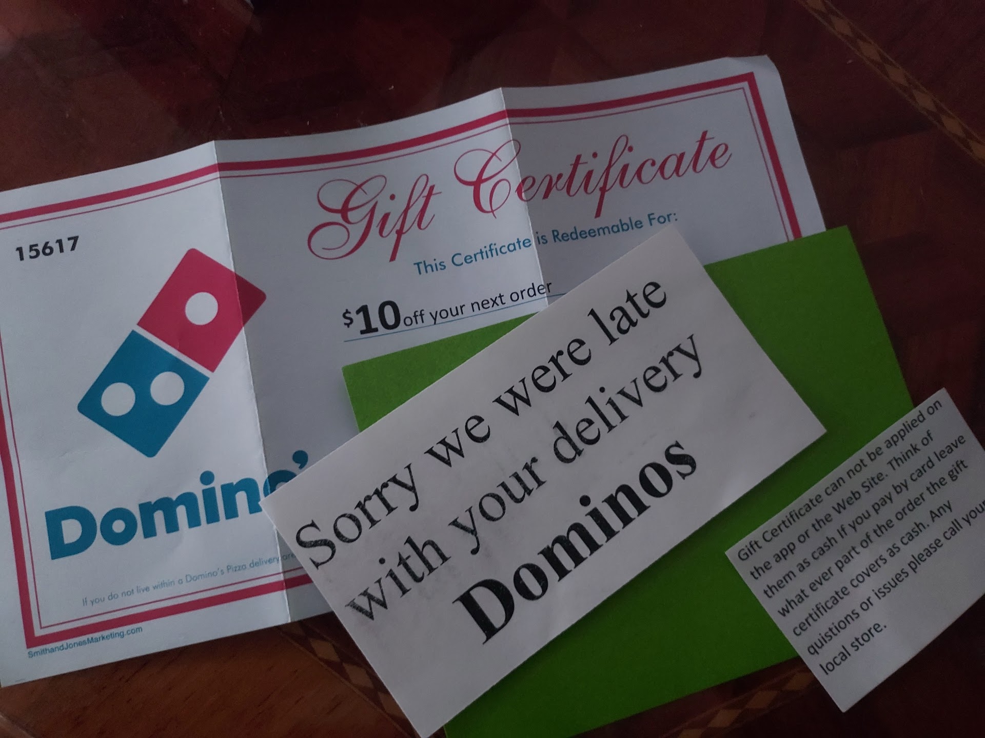 EDIT: Domino's is a high quality company. They are willing to admit their mistakes and fix them! They put the customer first. They consistently will hear the customers problem and fix it, without question, even if they lose money. That makes a company 5 stars as far as I'm concerned.