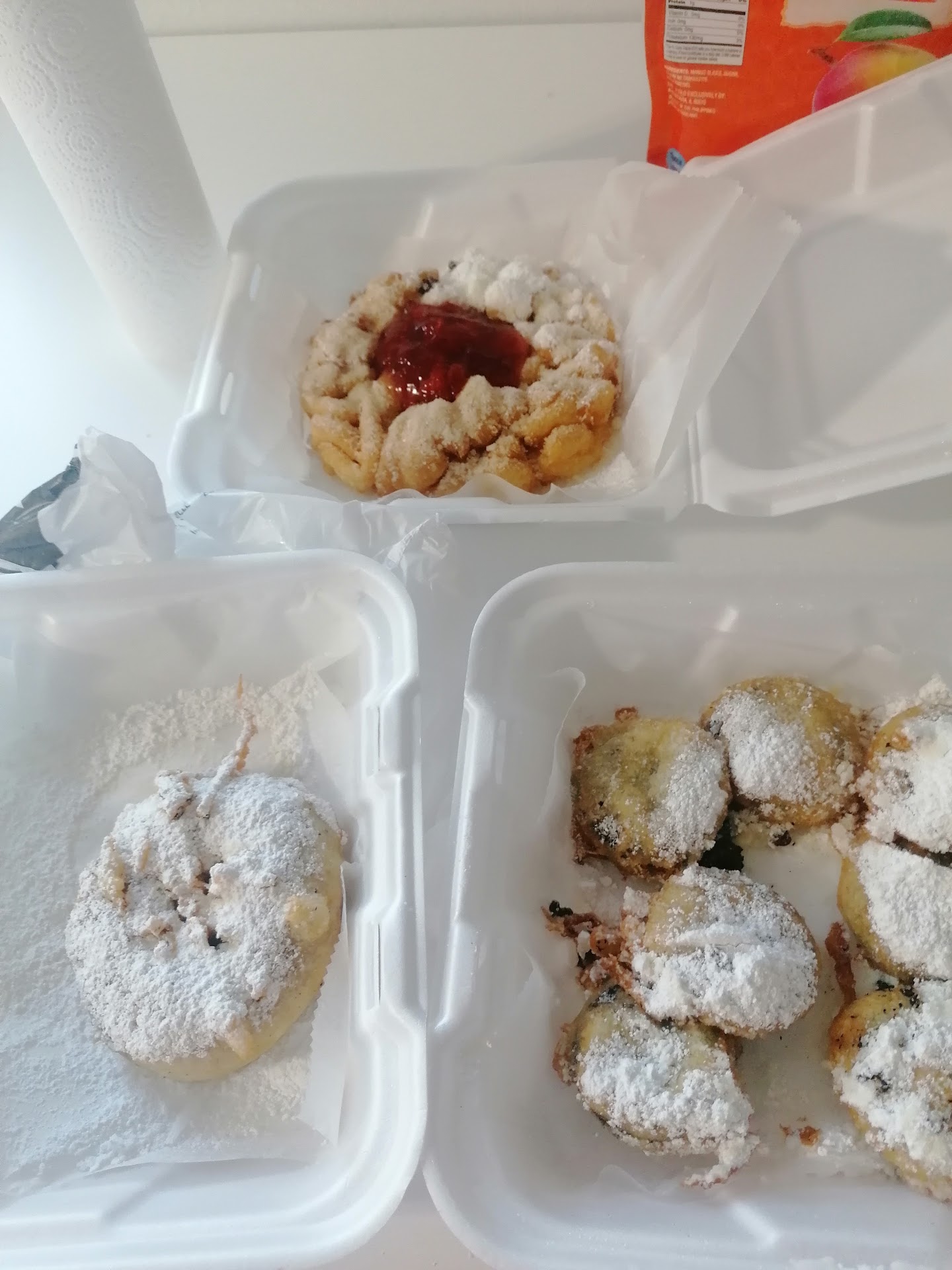 Absolutely wonderful funnel cake, only problem I have is they say they are open and we can order on Grubhub or Doordash yet the last 3 times my family and I have tried to order when they are open it tells us no can do that they are closed we are so confused and just really want our amazing funnel cakes we've had delivered to us in the past. Hopefully this gets worked put my girls...