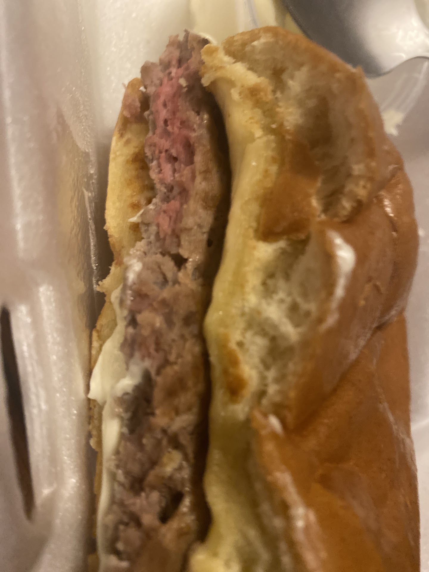 I will NEVER order another burger here!!! They need a new vendor or go back to hamburgers REAL MEAT The quality is WAAAYYYY DOWN PRICE IS SKY HIGH I left and went to McDonalds bought a 3.99 Dbl cheeseburger which was LARGER & much better than this EXPENSIVE SANDWICH!