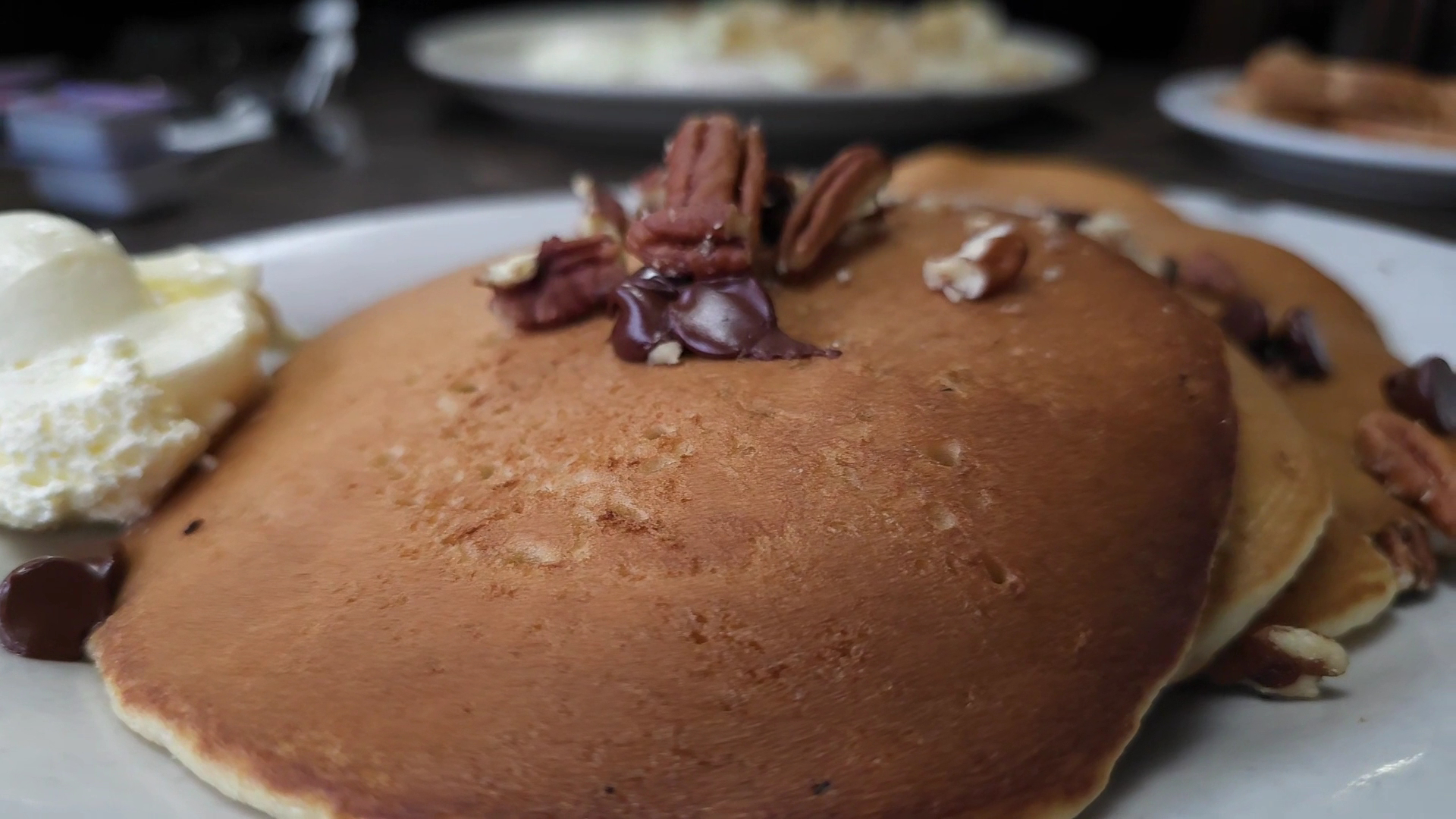 I went for the pancakes and decided to jazz things up with pecans and chocolate. Each bite is a perfect balance of nutty crunch and sweet, melty chips, all wrapped up in fluffy pancake goodness. And don't even get me started on the sausage egg and cheese sandwich; it's a hidden gem that's not on the menu, but ask, and you shall receive. The biscuit is soft, buttery, and just the right kind of indulgent.