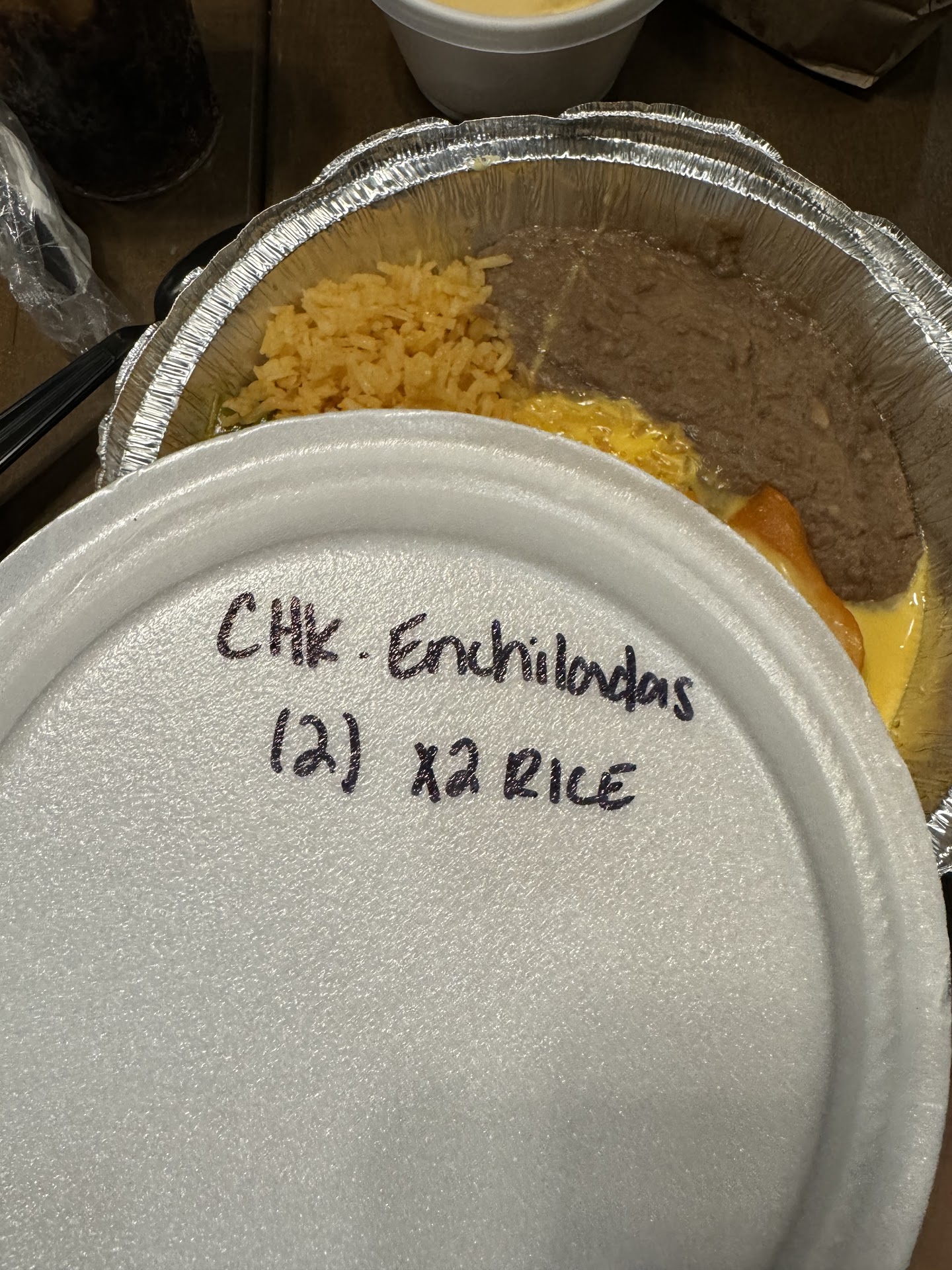 I am confused and a little concerned as to how this restaurant has even 4 stars. My small and simple order of chicken enchiladas al carbon for dinner turned out to be a sorry excuse for Mexican food. Not only was it far BELOW sub par but my order was also incorrect. As you can see written on the plate, I requested double rice no beans. As seen in the photograph presented that is indeed NOT what I was given.