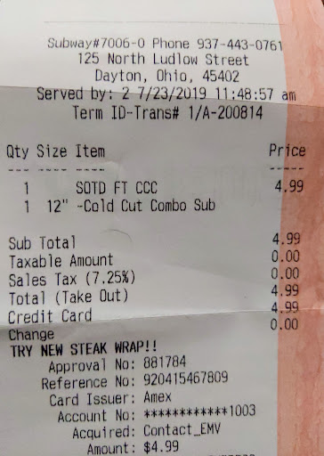 As a worker downtown Dayton, I was pretty disappointed stepping into this convenient Subway location, as first impressions are long-lasting. It felt like an old, musty broom closet and not as inviting as most locations are. Nobody greeted me, and I had to figure out where to even begin ordering. The server acted as if I interrupted their winning the Nobel Peace Prize, and the assumed manager milling around behind didn't seem any better. I believe they were cleaning something? I hope so! What I couldn't tell. As they reluctantly put together my buffalo chicken sandwich, I felt as if they wanted to hurry up and get back to the Super Bowl or something. My apologies for interrupting their front of a sandwich franchise. I felt this was just an asset store in their portfolio, and the owner makes his bread and butter elsewhere. It's a shame, though, because downtown Dayton needs more of this type of fast-casual shop for the hungry lunch crowd. The courthouse, police, jails, boatloads of lawyers, and federal buildings are their neighbors. Not to mention, the entire theatre district sprawls out before them as the Schuster Center is directly across the street. Do they even try to cater to any of these opportunities? Nope. They aren't even open for hit Broadway shows. And their current open hours are trash. What a joke. Make it worse, the chicken wasn't even tasty, and I got bubble guts later smh. I'm not going back there ever until I see a 'Under New Management' sign and I'm not the...