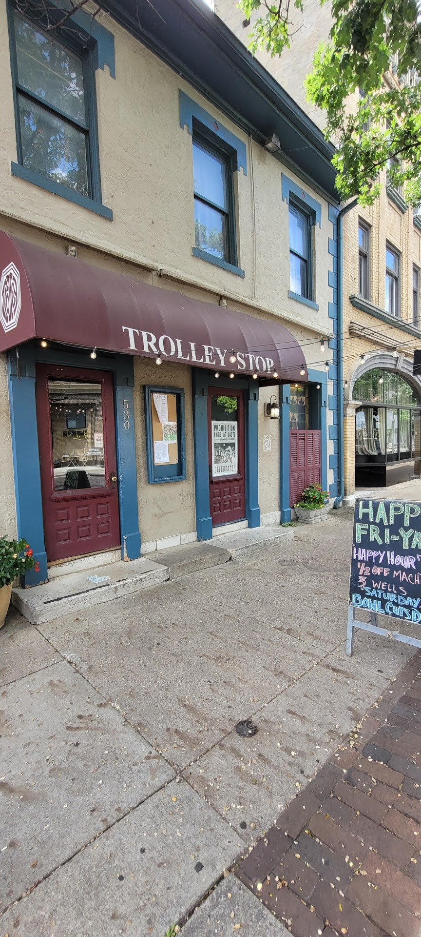 My friend, my mother and myself went there on August 9th to continue celebrating my 50th birthday from the day before. We had never been there before so I said I wanted to do a birthday lunch. The Trolley Stop was the place that I wanted to go. Parking was not horrible considering they had the Oregon district blocked off for the weekend. We came around 1:30 almost 2 o'clock, and it was not crowded at all. Our server was very courteous and made sure that everything was all right with our food. We all ended up getting salads and the salad was delicious! The only downside to going to the Trolley Stop (and they can correct me if I am wrong) But according to the words that was printed on the steps, the restrooms are upstairs, which is two flights of stairs. My mom has a walker so getting to the restroom would have been impossible for her. I don't know if they actually have a restroom downstairs but for anyone who has a walker or wheelchair...going to the restroom would probably be out of the question. But I could be wrong. The price of our salad was reasonable. It was a large salad and it was only $8. I would definitely visit again but not with my mom as she...