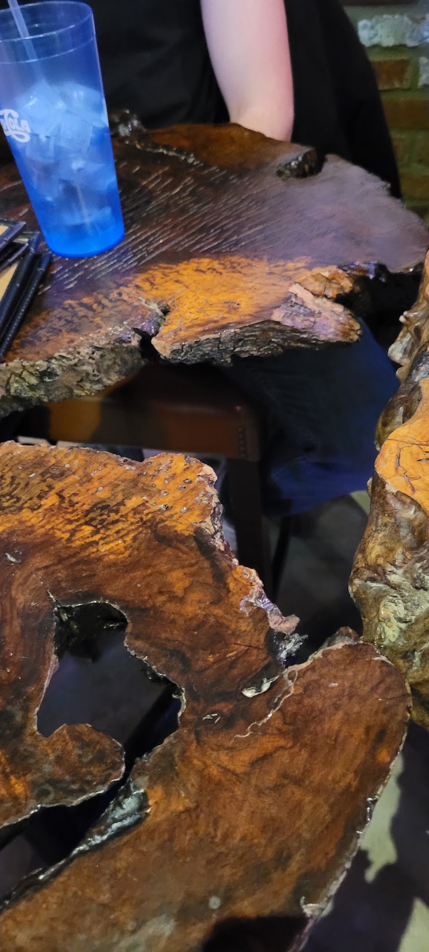 The tables. They are terrible. They are probably incredibly expensive and so management doesnt want to get rid of them, but some of them need to be retired. It's clear the designer knew more about art than engineering. Several bar tables actually have HOLES in them because they are literal cross sections of misshapen tree trunks. There are several dining area tables that are warped so much that your beer glass will slide off the table. It has happened numerous times to me or other guests. The staff have known about the issue for years.