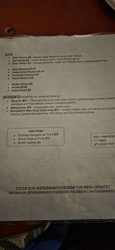 Read moreI will admit it has been awhile since I’ve been to Tuba but I will say that when it comes to craving pretzels, Tuba does it right. The owners are amazing people who are very passionate about the food they serve. They are very much a “buy local” restaurant and whatever is not made in-house is sourced from local vendors. The Swabian style pretzels are fantastic. The unique shape allows for you to get both fluffy, soft bits of pretzel along with a thinner crunchier portion as well. Let’s talk about mustard. Drew, the owner, makes his own and I swear it’s some of my favorite mustard on the planet. I buy it in bulk to make my deviled eggs with as well as put it on all the sandwiches. ALL of them. You may say, “well who has a favorite mustard? I don’t even like mustard!” Then I would say, “me. I have a favorite mustard and I get it at Tuba...