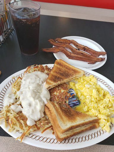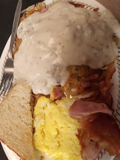 !!!!Be advised!!!! you really should do the following. inspect your food and kids food before eating, Ask your server to wash her hands before touching your Order .look over your silverware for unclean dried up food. And look over your check to make sure no extra charges are on it. As for foods taste idk my kids are only ones they ate anything.(less than half a waffle) servers were horrible and lack of management (didn't know how to properly write down or read off ordered food from ticket correctly), cold food, cook shedding like a dog with no hair nets or gloves, one employee was out side smoking walked back in and back to work (no gloves), never even looked at the sink. Another server touched broom dust pan and pieces of a broken plate she cleaned up off the floor and right back to serving no hand wash at all. (Pretty sure these 2 , plus the shedding dog cooking the food are health code violations)rude employees (not all just some. I was told I need to go on and shut up for telling two customers to watch for hair in their food when they get it. dirty silverware(has to be health code violation). They Completely messed up almost the entire order, they laid out our silverware and 3 of the 5 forks had dried up smeared food (not thoroughly washed), my grandmother's food was cold when she finally recieved all of it at different times on 3 separate plates for 2 biscuits and gravy with egg.my fiance ordered a double original Angus chili cheeseburger (she stated it taste burnt so she didn't eat)with hash browns and a drink they bring her 2 burgers and a bowl of chili never recieved her hash browns and tried to charge her for the drink?? didn't bring my kids the eggs they ordered, still got charged for them on the check. Found hair under my eggs( sent it back without touching the first bite) My oldest son was eating his waffle and egg minus the egg (still never received either order of eggs for my kids) glanced over at his plate and there was a hair laying there right where he just picked up a bite of waffle. The employee I mentioned it to tried acting like it was his hair so I had to plainly point out this was a short red hair. He has blonde hair that is longer then the one on the plate. me and my grandmother order the 5 dollar 2 biscuit and gravy with eggs and drink (a drink that we both got charged for on the check) with a side of sausage. They bring out 1 plate with two biscuits split (4 halves) and tell me we'll have to move 2 over be put both on same plate, and her a plate with eggs on it. I explained to her that was how my plate was supposed to be she needed her 2 biscuits and gravy . by the time it got there (served cold) her eggs were so cold she wouldn't eat any of it. Stay away everyone. Only plus they did give us this disaster of a meal for free(after I asked for a manager and was told there wasn't one on that shift tonight and had to tell the trainer that I refuse to pay for that disaster) thank you for that. Basically the only thing they did right was the chocolate milk for oldest boy...