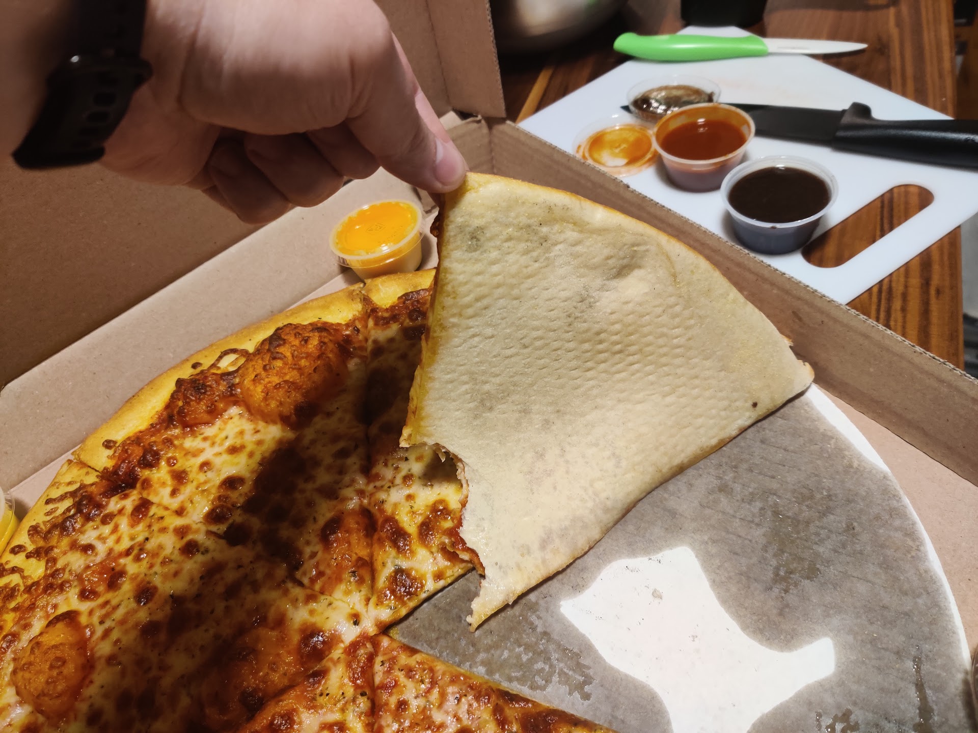 To be thorough, this also was not new york style pizza- yes the slices are large; but the dough is 2-3x as thick as it should be and there's too much cheese for that style. This is closer to papa johns but with much...