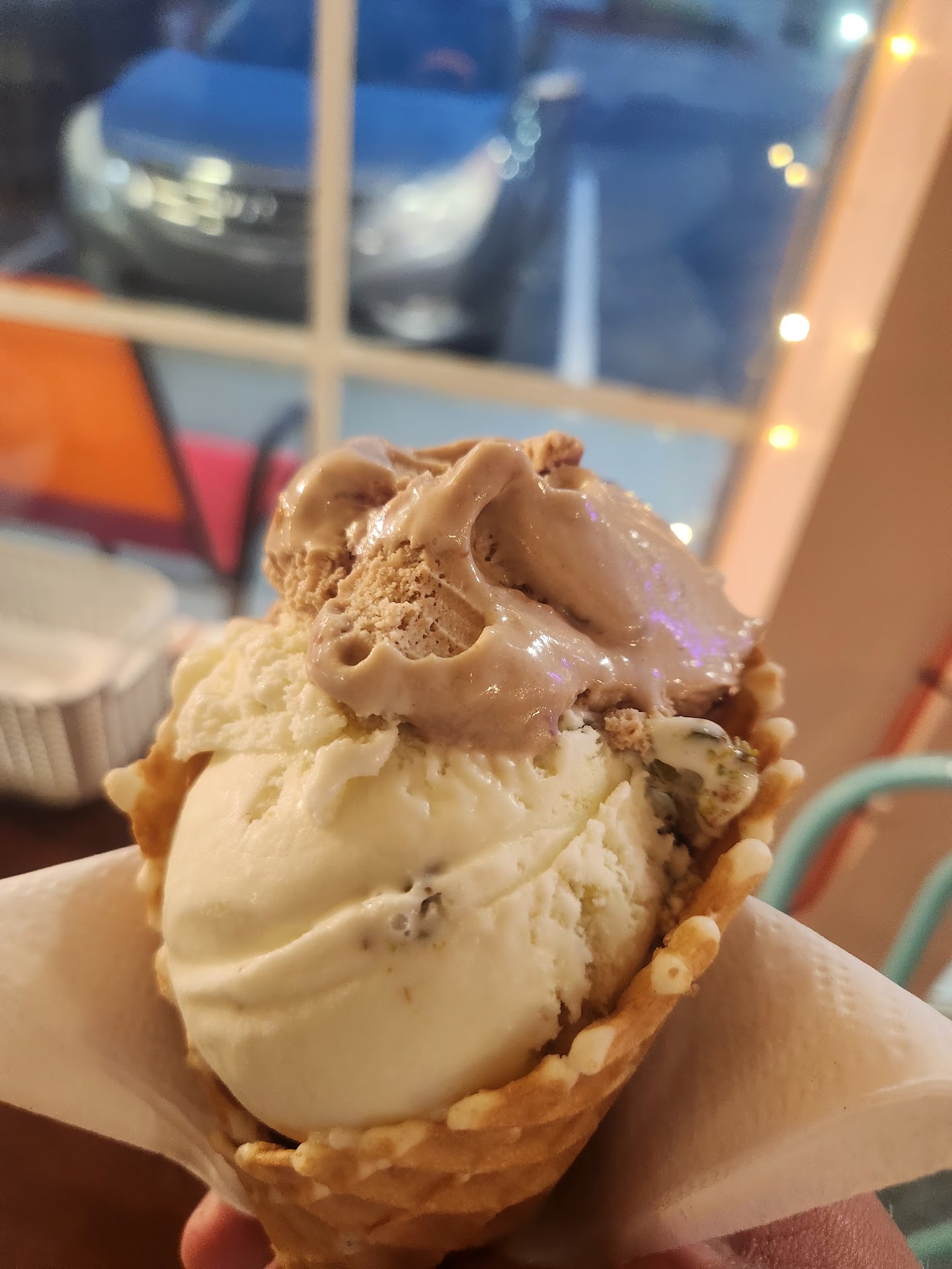 Read moreThis used to be our favorite ice cream. However, since our last visit something has changed. We did not enjoy our visit this time. There were 4 in our party and we all opted for waffle cones which have two scoops. The texture of the ice cream was not smooth, but rather chalky and bland.