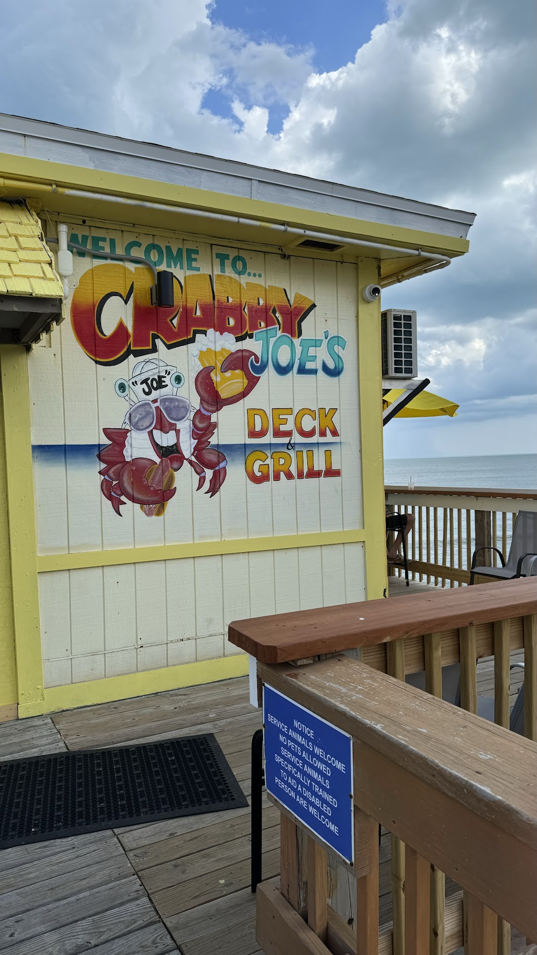 Read moreWe were so disappointed. For their fish they served a fresh water farmed fish that was soft & slimey. We sent it back for Mahi. The Mahi was dry & tasteless with a ton of spices on it. The coleslaw tasted spoiled. The server gave us a choice of white potato fries or sweet potato fries, we chose sweet potato fries which came with an upcharge which we found about when we received the bill. Again the server did not inform us about upcharge. We went to a SEAFOOD restaurant & was served freshwater FARMED fish which the server never informed us. The fish was like a raw jellyfish. GROSS! I told the server i felt like the bill shoulbe dicounted because of the issues. Also, it is not comfortable to send food back to the kitchen. No discount for raw fish & spoiled coleslaw. I was taking my 90 yo mother to lunch. She has had a stroke & has difficulty expressing herself. When I take her out to eat, she usually cleans her plate in addition to the appetizer we all share. She loves fish & shrimp. She left ALL her fish less one bite & 2 pieces of shrimp out of 4 shrimp. She ate the sweet potato fries. I saw that she wasn't eating the fish or shrimp. I didn't know if she wasn't hungry or she didn't like the food either so I ordered some fries. She cleaned up the basket of fries. So she was still hungry & she didn't like the food either. EXTREMELY DISAPPOINTED! I will never go back. We were looking for Crabby Oceanside (which is excellent) & couldn't find it so we went to Crabby Joe's Deck & Grill. ...