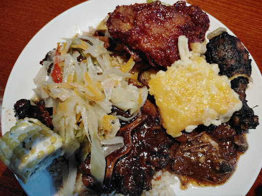 Read moreIn the serendipitous good decisions department, I arrived kinda late at the hotel across the street, had no desire or energy to find a restaurant to drive to and have a sit-down so planned to walk just down the road to Subway. Some people in the hotel elevator had takeout packages from this Caribbean restaurant directly across the street from the hotel so, heading out for Subway we stopped in to look at what was on the buffet. Oh, so good! Vegetarian options included rice with black beans, very nicely done cabbage, and plantains, crisp items on salad bar. The jerk chicken was fantastic - not too spicy, excellent flavor and paired perfectly with the yellow rice. The mac cheese was great comfort food. The variety of desserts looked artfully tempting but sometimes you have to have restraint. (If you get take out, they will fill the order for you, asking which specific buffet items you want and charge accordingly; I don’t know if it’s like this for dining in also- and whether lunch or dinner-sized portions. Can’t really speak to atmosphere due to take out ordering. It looked comfortable and pretty standard for...