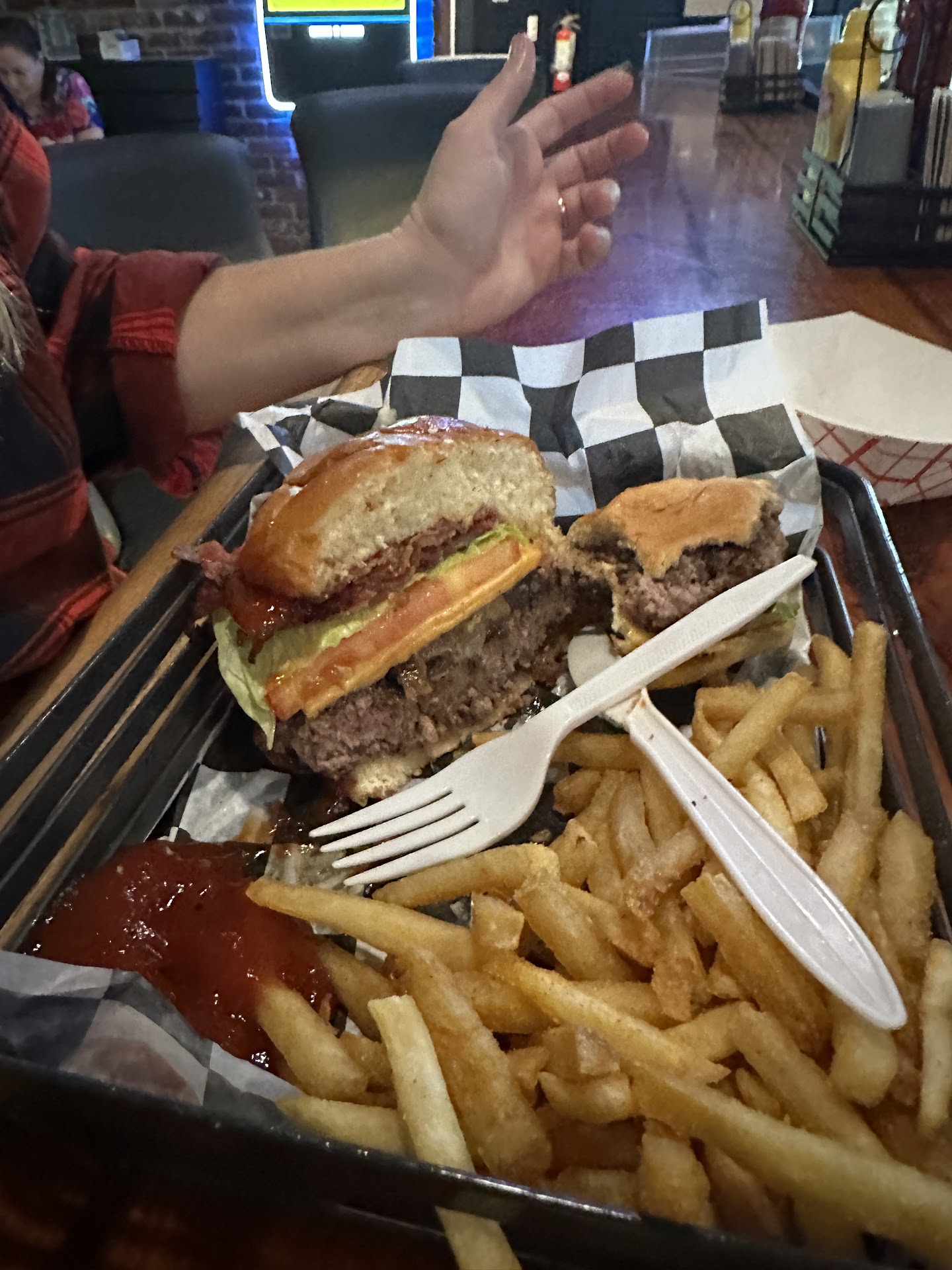 We asked our server if they had changed the recipe for the cheeseburgers. Her response was that she had no idea, but she didn’t think so. She’s didn’t ask why we both had not finished our meals nor did she inquire further. Actually, she appeared to be somewhat distracted, certainly disinterested. We asked if the Manager was available and she said she was out of town. We asked for our check and left as quickly as possible. We won’t be back to the Brickyard anytime soon. Our bill, for two cheeseburgers and two glasses of water was more than $36, much to pricey for the inedible meal that we tried to eat.