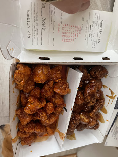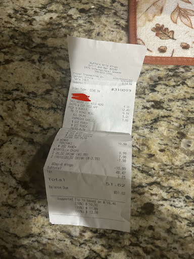 Read moreThis was our first time at Buffalo Wild Wings. We walked up to the to go counter to look at the menu and place a carry out order. Zoe was not friendly at all. No suggestions, no glad you are trying us for the first time, nothing. She seemed annoyed that we wanted to place an order. My husband ordered a buffalo ranch chicken sandwich. Zoe’s reply was rudely “side?” No offer of what sides were available. My husband got fries. I ordered a buffalo chicken wrap, no tomato, with fries and my son got the chicken Parmesan melt sandwich with fries. There were maybe 15 people in the restaurant and 3 people came in after us to pick up phone/online orders. Not busy at all. It took 45 minutes for us to get our order. Zoe brought it up, said my name, and walked away. She didn’t check or wait to make sure everything was there. We were missing fries and the chicken parm had no sauce on it. I couldn’t see inside the wrap at that time but that was wrong as well. We had to get someone else to find Zoe so we could get the fries that were missing. No apology, just gave us fries and walked away. During our wait, we watched a server pet a customers dog and not was or sanitizer their hands. We also watched another customer picking up an order, having to raise his voice to get Zoe’s attention because something was missing. In other words, food was horrible and service really bad. The Buffalo chicken wrap had tomatoes when ordered without, the Buffalo chicken sandwich had barely any Buffalo or ranch which we had to add when we got home. The chicken parm had no sauce but we did get some on the side. All fries were cold. Food was ordered at 8:24pm and the kitchen tag said it was put out at 8;47. Zoe did not bring it up front until 9:05. Finally left at 9:10 just to be horribly disappointed. Considering this was our first time, I doubt we will be back and will not recommend this location to anyone. The response from Buffalo Wild Wings guest care was to download the app and they will add 2000 rewards points. That is enough for the sampler appetizer. Pathetic response. After being in the restaurant business for over 30 years, this is unacceptable. I usually never complain or write reviews but it...