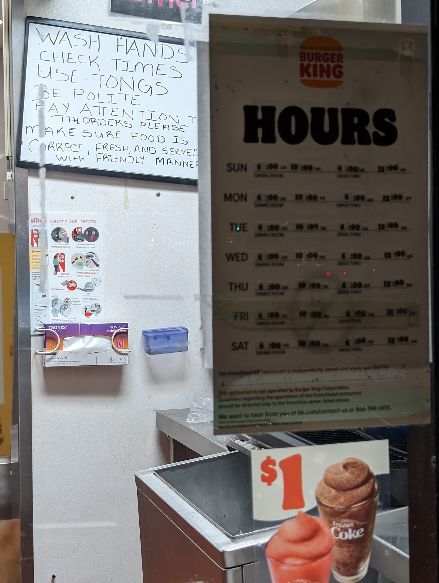 Read moreI like to stop here because this place is in my route while running errands. Generally after 4:00 until around 11:00 at night. One day last week the late evening we stopped in for two cheeseburgers, two drinks and their chicken sandwich. The lady taking our order was completely lost and told me four times that it was her birthday..(lady I'm here for you to take my money and give me a burger not a bunch of excuses). Stopping in moments ago, over a week later, the same lady had a crew member helping her correct a problem when a customer wanted the price difference between a four-piece and a four-piece meal.. I heard her exasperatedly claim twice but she's not going to be able to get it and then walked away stating that she needed her Bible.. I mentioned to the guy that it doesn't look like she's going to make it because I saw her last week having problems.. Then he told me she's about to be the manager.. If the owner of this chain reads this, you have a young black kid (I actually gave him commendations to the manager one evening) with dreadlock type hair and a large older black lady that both work in the evening.. those two need to be promoted and this white lady needs to be fired.. just this...