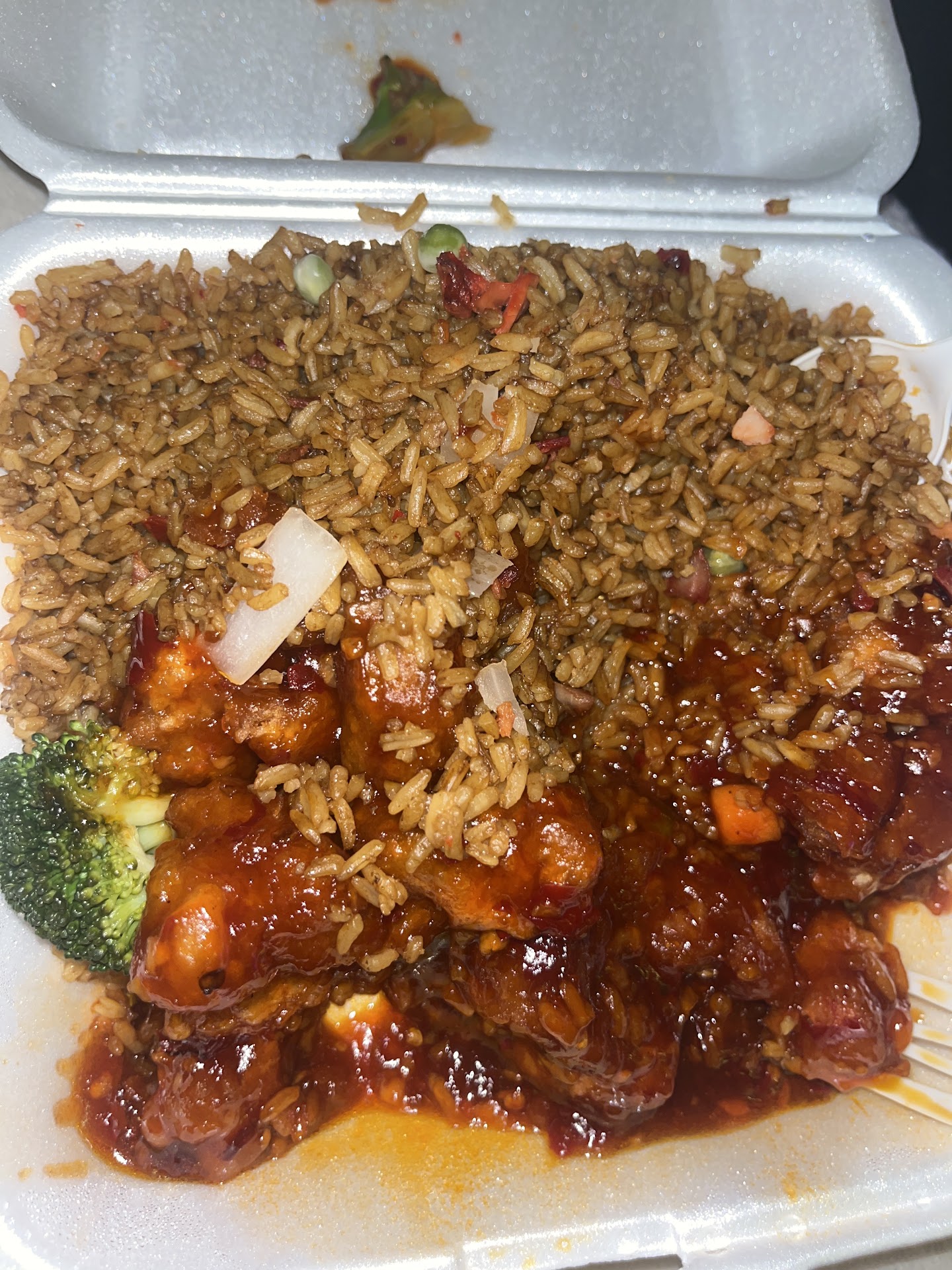 Read moreOrdered delivery thatâs why Uber eats got five stars under service!! Originally ordered because the reviews implied they delivered. Called the store they did not deliver. Had to order through Uber Eats which arrived before scheduled time that was awesome! Ordered a large pork fried rice which cost almost $15 and it is disgusting super dried out my kid frowned after tasting it and he loves any and all rice! He refused to touch it after the fist bite. Dad came in and immediately after tasting it throw out in the trash! Bourbon chicken thumbs up! Cheese steak eggrolls on the fence very bland.. $18. Beef and Broccoli shoulda been half off!! We were not happy spending almost $70. for only a fraction of food the people ate! The dogs on the other hand loved it all!! I hope you can see the dryness from the wet in...