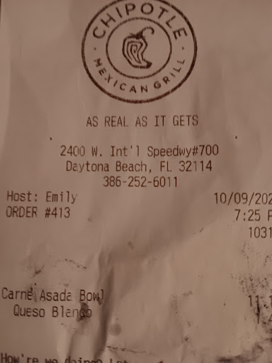 Ā Ā Ā Read moreFirst off: I LOVE Chipotle! But this location has to be the worst. Iāve hesitated to write a review on them, but after the 7th time of not getting my order correct, I figure I would do it just to hopefully keep someone else from having to experience the same frustrations. This location just struggles to get orders correct for āto goā. The ādine inā experience isnāt much better tho either. Most locations are really good! But Iām assuming management may be different here. When I tried to speak to a āmanagerā the last time to express my concerns (understanding itās $30 minimum each time I order from here) I was pretty much dismissed and talked to as if I were lucky to even have the opportunity to get food from them. It was actually quite funny because in this instance, they didnāt even bag the right order (the whole thing was completely wrong). The person said that theyād āsee if they can replace the foodā. To make sure they knew I wasnāt just ācomplainingā I had driven my delivered food from my home to the location so I could show them what I had received. But I digressā¦.. Soooooo, with all that being said, if you like to gamble as much as I do, take your shot. And yes, Iāll order from here again and again but only because I really like Chipotle, and have no other options but to deal with this place. But food will be missing, or they will include little extra surprises, like no meat, or extra cheese when you didnāt order any, or a teaspoon of beans (true story, like 8 beans) or someone elseās order all together. Who knows! We shall...