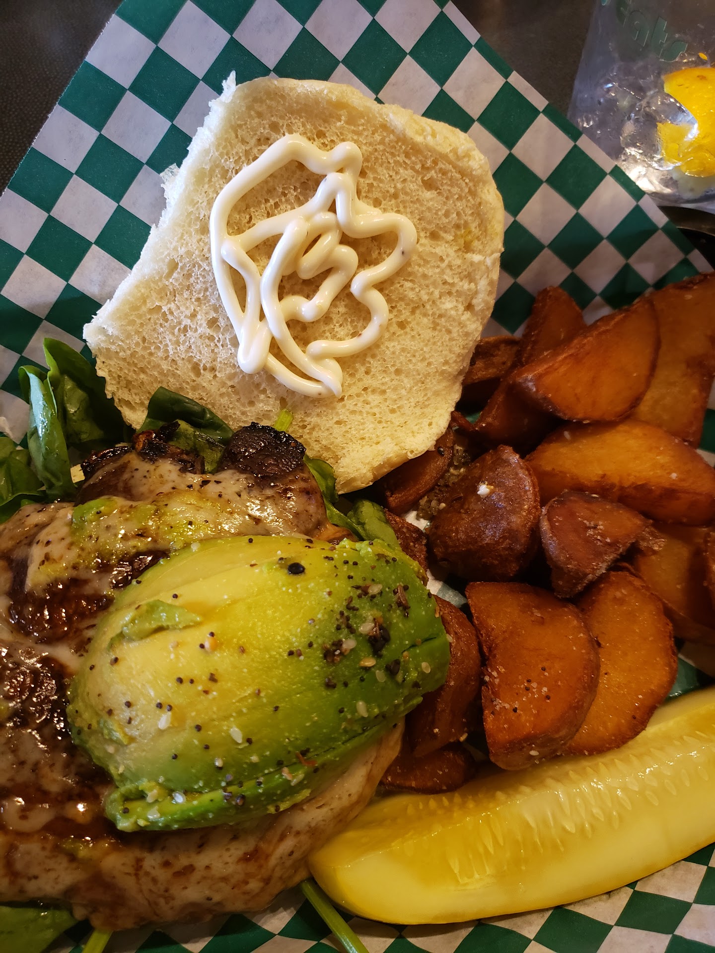 Read moreI had such high hopes for this place. We had two smoothies Lizzy chia blast and a dakchinno. Both were good. To eat Sundance sandwich with potato and pasta salad. Curry chicken wrap with potatoes fried with dancer Dust. The sundancer sandwich is warm and delicious it had a fried egg on it. the fried potatoes with dancer dust were pretty delicious. The curry chicken sandwich wrap was missing a little something. I don't know. It had a little bit too many vegetables and not enough chicken salad. The potato pasta salad was just plain. I went to use the restroom and the floors were so dirty and sticky. They had a fan on the wall not running but completely covered with dust. The ceiling fans in the restaurant were filthy covered with dust. There was two little bitty bugs crawling on my table. I don't know what they were but it wasn't a pleasant experience. The whole place needs a deep deep deep cleaning. The food was good but you know how clean is the food if the building itself is not kept up. I mean hire somebody once a month to come in and do a deep cleaning for goodness sake. It had 50 years of dust and dirt. Otherwise, it had a good chance of being a really good place. The atmosphere is really cool and hip with a good vibe. So if you want to try this place just close your eyes. Don't look at anything and just use your taste buds and you'll be just fine. Owners just please please clean your place. Put $200 a month into hiring somebody to clean it from top to bottom. Just trying to give some...