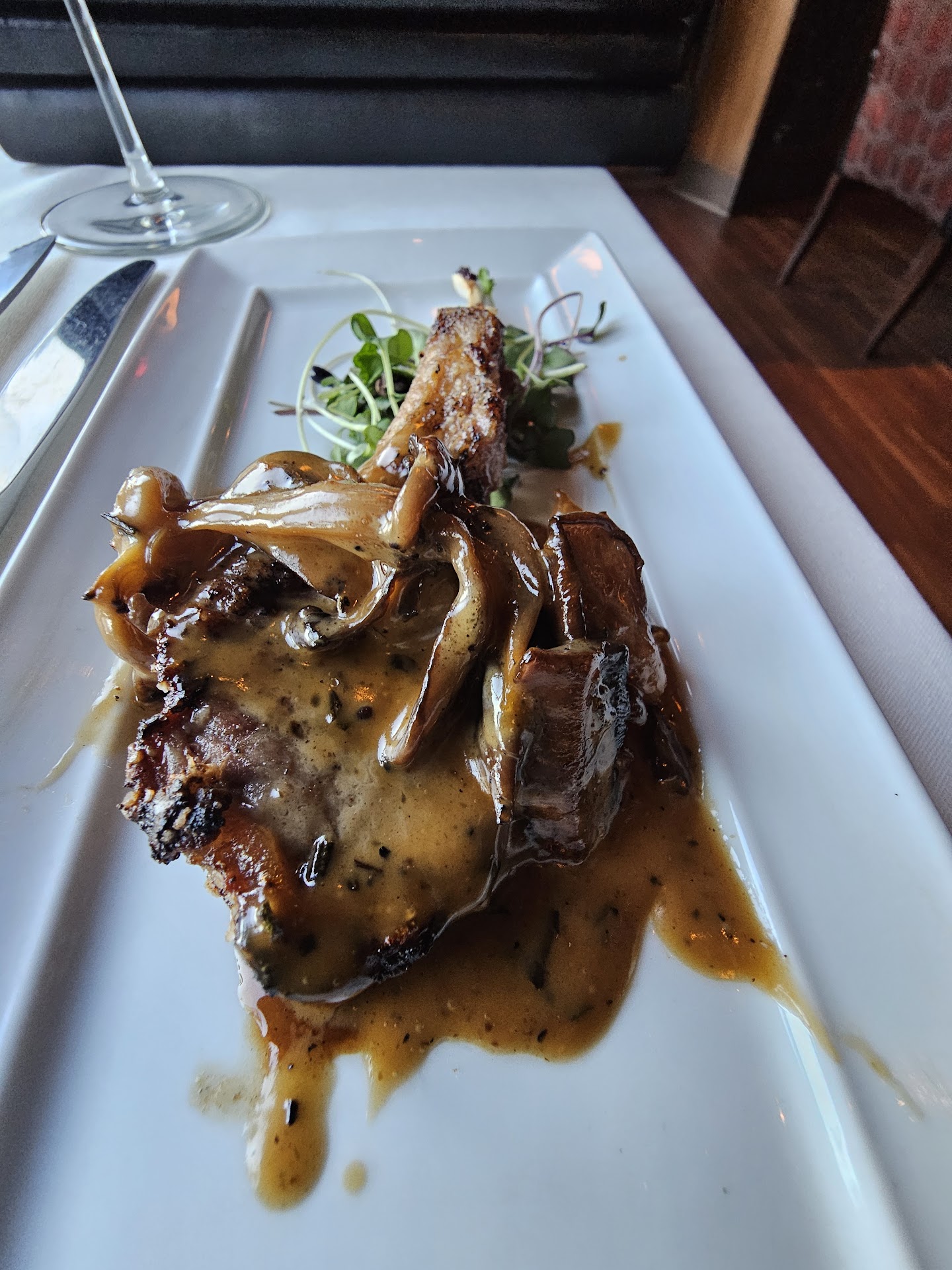 We both ordered from the Early Night Menu, which includes two courses. My daughter had the Chicken Milanese and Lobster Bisque, while I opted for the Classic Baked Onion Soup and Chopped Steak. Everything was beautifully prepared, but the Chicken Milanese truly stole the show—perfectly cooked with just the right amount of flavor (not too heavy on the capers). The Lobster Bisque was rich and creamy, and the Onion Soup was one of the best I’ve had—flavorful, cheesy, and not greasy at all. The Chopped Steak was tasty too, though not my personal favorite simply because I’m not a fan of brown gravy. The mashed potatoes and crispy onion strings on the side were excellent!