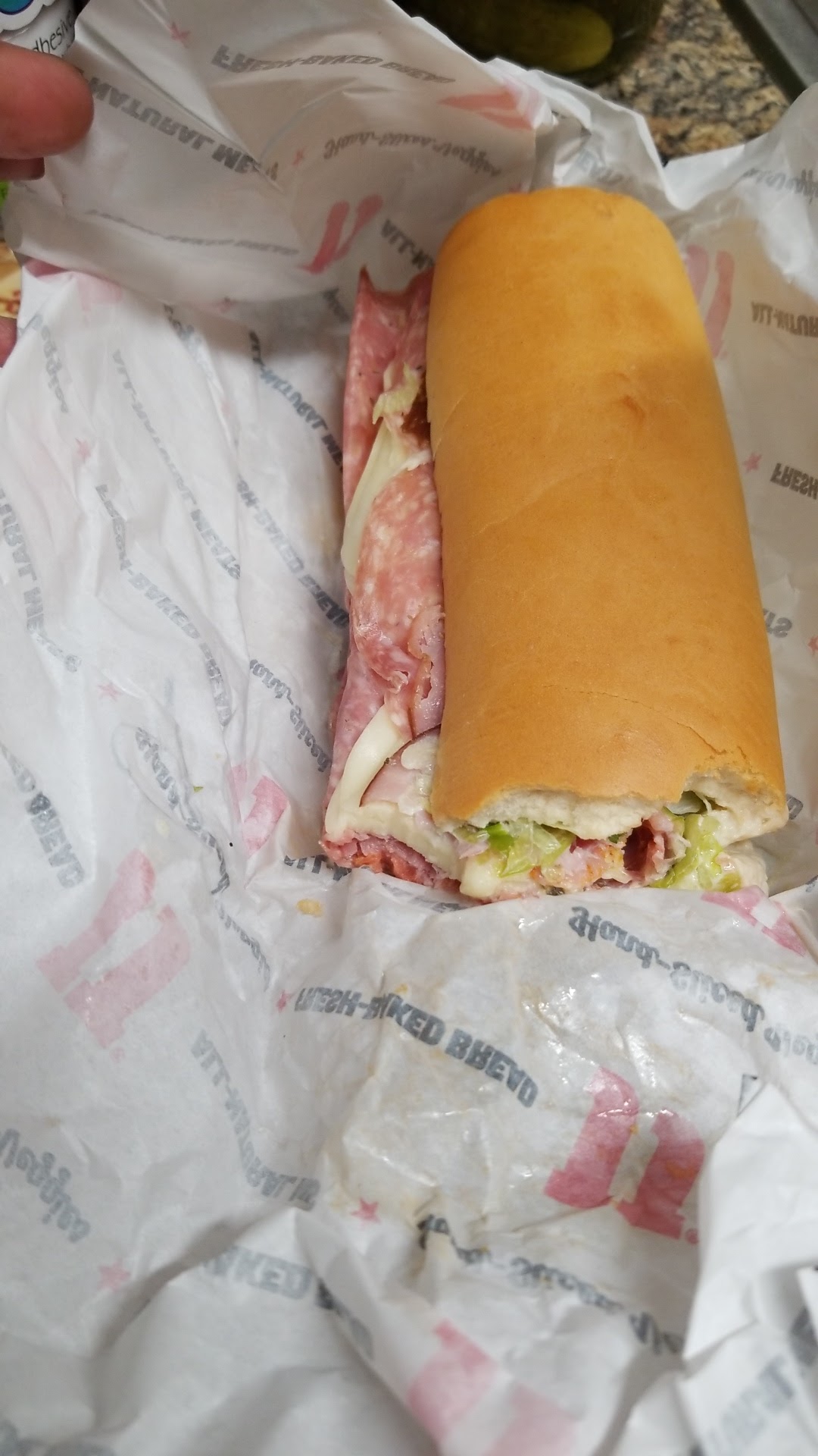Read moreIf I could live in this Jimmy John's, I would. I LOVE Jimmy John's. My favorite sandwiches are: the Italian Nights, the Vito, the turkey, and the ham. The sub bread is fluffy but strong, I ask for the sub bread to be scooped out (trying to decrease the glutens) in order to add extra veggies, and make it easier to hold with both hands & wolf it down. I personally never order extra meat, the regular amount is more than enough for a meal. They also offer a thick multigrain wheat sandwich bread slice choice for the none wolf-like feasting patrons. The offerings include: (a) wraps called Slim Jims with just the meat, (b) vegetarian subs & sandwiches, (c) double meat, (d) chips & huge single wrapped cookies, (e) fountain drinks & sweet and unsweetened brewed tea, (f) mini sub packs, and (g) party packages/ catering packages. AND THEY DELIVER TO A LIMITED AREA. Delivery is fast...