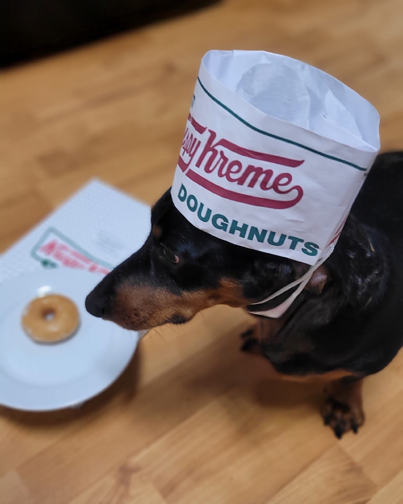 Read moreFirst time in years that I stopped at this location. We were in the area though today, and decided to stop and get some donuts. Was actually looking for their vegan donuts, only to find out that they're only currently available abroad?? Don't get that, very disappointing, but ok. Needless to say, we got some donuts for family members. While there, did realize they have minis. đ Soooo....had to get one for my baby boy, Loki đŸ(who is in the pic...and no, he's never allowed treats like this as I'm VERY picky...but this was a one time special treat that he got a piece of). The place was clean, there was a big variety and availability of fresh, different donutsđ© (including special edition Barbie and seasonal...like pumpkin), and the staff was friendly and interactive. They also had their Krispy Kreme hats you could help yourself to, which, well....you'll notice in the pics đâșïž. The only "drawback" of this location, IS the location itself. It's just in an area of the city that isn't the greatest...very run down. It's been that way for quite a while. Nevertheless, that's the only negative, as far as I'm concerned. Unfortunately there's not much they can do to rectify that...and as long as the management maintains it as I experienced it today, it's worth the stop! I unfortunately didn't get a picture of the regular donuts, but I got a pic of the mini donut, with my sweet boy. Needless to say, he gives it 5 stars...