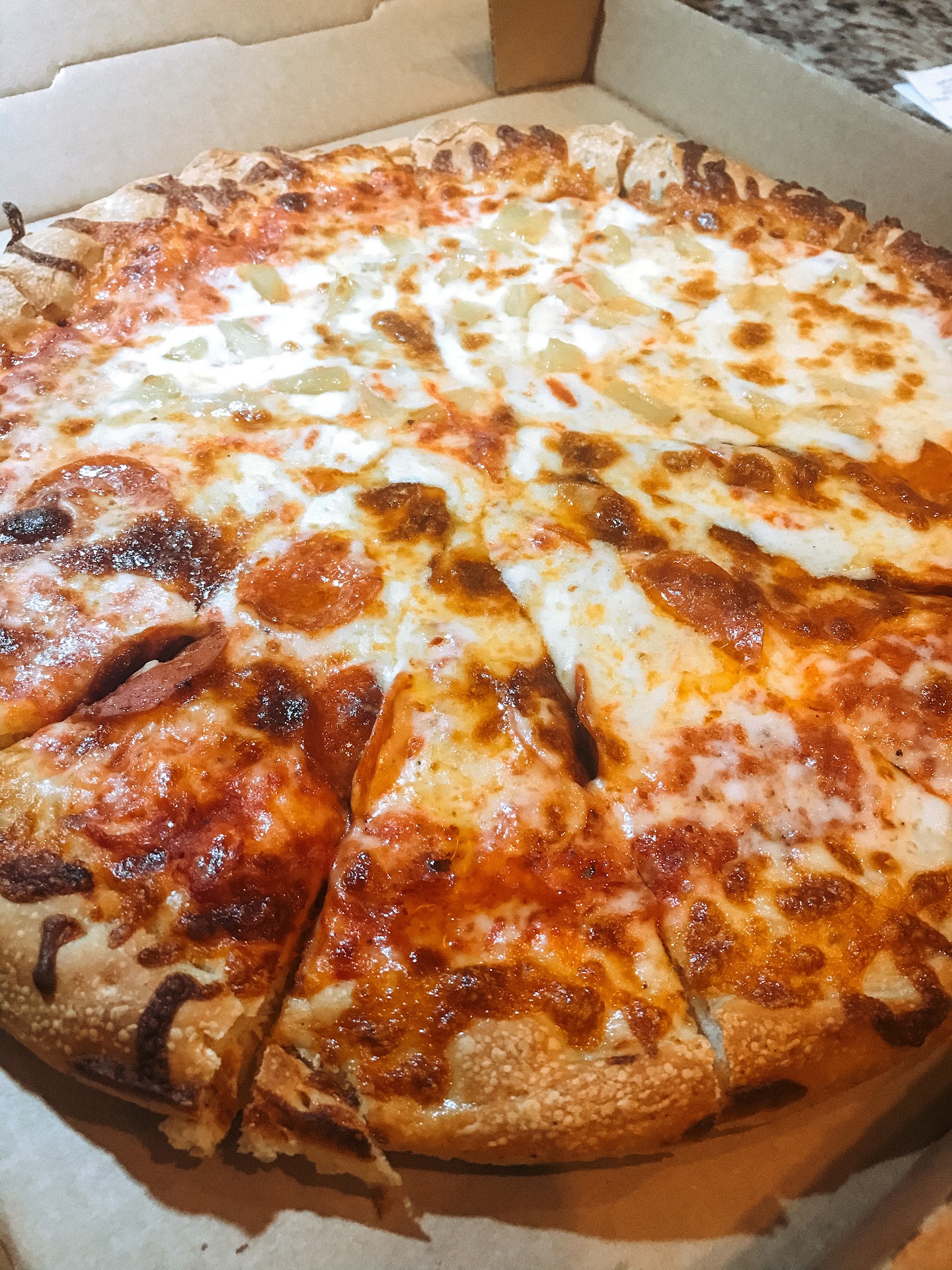 Louie's Pizza House is NOT one of the greats. The pizza (if you want to call it that) was unseasoned tomato paste topped with the cheapest cheese you can buy and the dough looked like it was pre-made & frozen and it smelled weird too, like sour buttered popcorn. We took a bite each and threw it in the garbage when we got home. For the money we spent at louie's we would have been happier with two little ceasers pizzas.