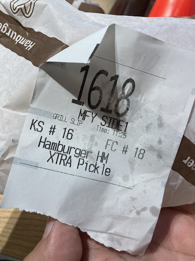 Read moreWe ordered ahead of time on the app and enter the table number when we arrived. It did not take long to get our food only a couple of minutes. My grandson ordered the happy meal burger with extra pickles. I had the double cheeseburger with light pickles and extra onion. My daughter wanted the chicken with extra mayonnaise. First thing my grandson goes for is his burger with only one pickle. He looked at me and I showed it to the lady bringing our food. It looked like a regular burger they just slapped his ticket on. When I showed it to her the bottom bun was rock had and you could see it had sat long. She said she was sorry and she took it back with her. My daughterâs chicken sandwich was as she ordered but the bottom bun was also hard. I took a bite of my double cheeseburger before I looked at it. The bun was rock had and appeared to have sat a long while and had dried ketchup and regular pickles and no onions. I took it up to the front counter and showed it to the lady. She said she was sorry and would take care of it. We finished the rest of our meals before the burgers were brought back. She asked us to check our food while she waited at our table. They were made correctly this time but had rock hard buns. I thumped the bun and tapped it on the wrapper on the table. She said all the buns were like that and have been coming in like that. She said she could take them back but it had already been long and we were afraid of returning them again The fries were hot but...