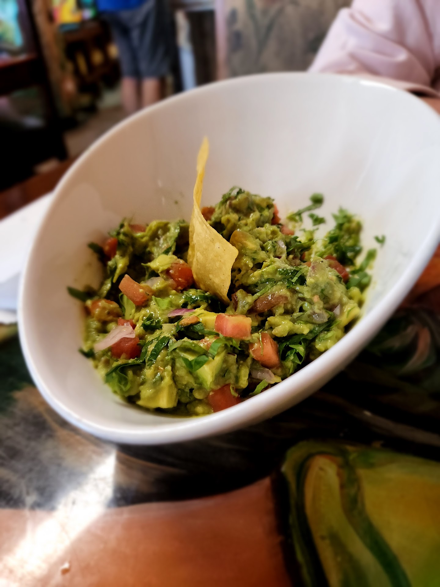Our waitress brought out chips and salsa and took our drink order immediately. We then ordered their house made guacamole which was wonderful. Not over seasoned or heavy on salt. Just right.