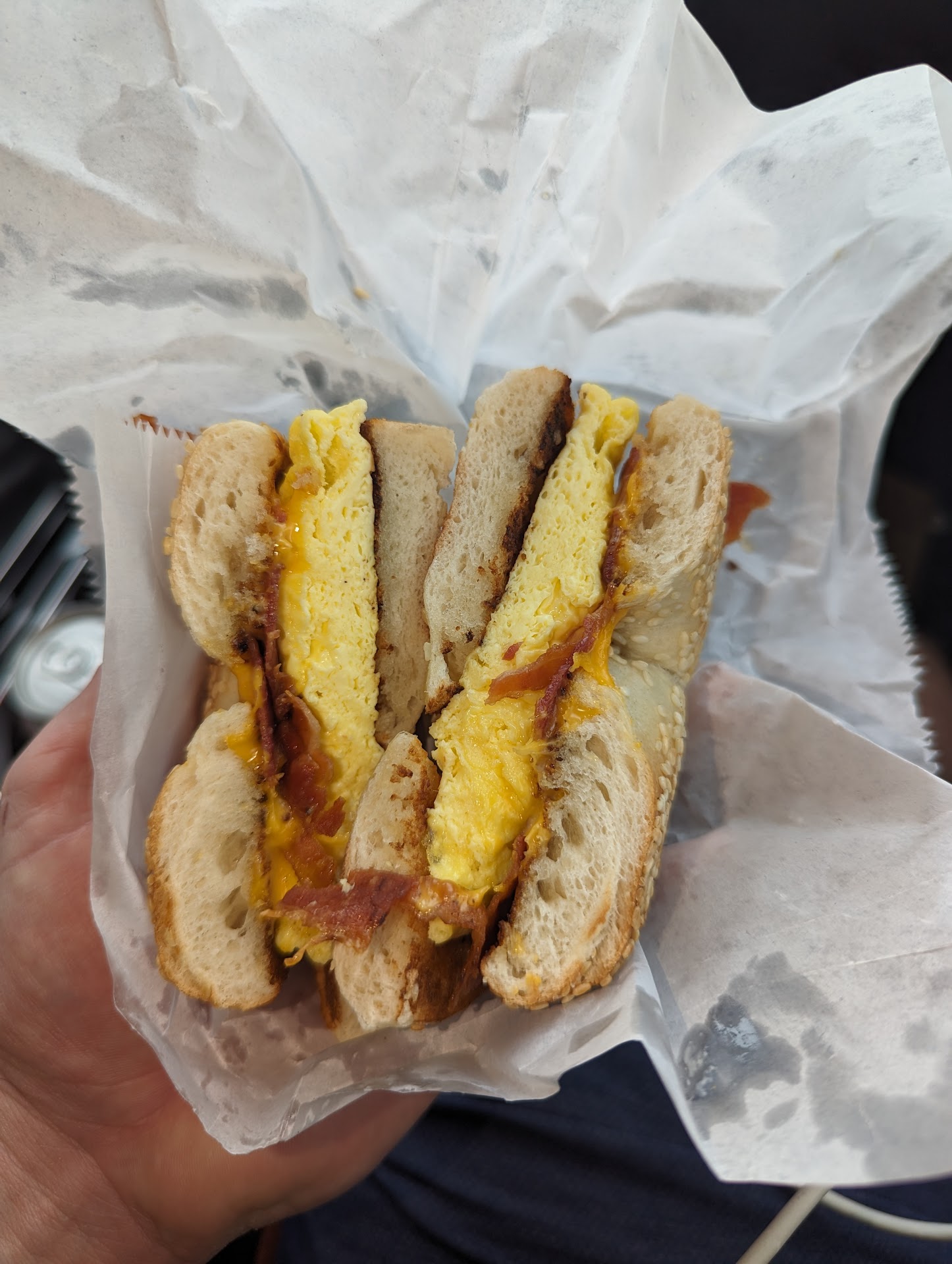 Went in here while waiting for my OB appointment. Asked the man working if they had any sandwiches with egg. He said yes. Then I proceeded to order a bagel with cream cheese and add an egg, and he looked at me with the weirdest look. I kinda froze and looked confused back, and he said "cream cheese and egg?? Well, I'm not eating it". He could tell I shut down and I was very uncomfortable after that, and he tried to make more comments and looked at my stomach and said "do you want a pickle with that too?" because I'm pregnant, and then said "I'm just kidding with you"... His tone and facial expressions were not in a joking matter in his original comments, and I think he just tried to recover from his weird and rude comments with bad jokes about a pregnant lady. Outside of the first interaction, I wouldn't mind a pregnancy joke or something, but it was just awkward at that point. I decided to tell him Im good and that maybe I'll come back...