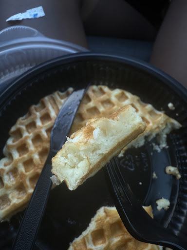 We ordered and my food came out first. Nobody else received their food except for me. After waiting 5 minutes I started to eat my meal by myself. After I was just about finished they brought out my daughters waffles. My wife still sat there with no food. About 5 minutes later I was about to get up and speak to the workers and then someone brought my wife her food (about 30 minutes after ordering).