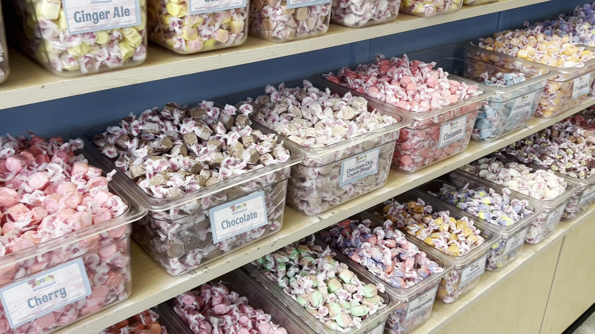 Read moreBest spot in Daytona to get fresh taffy, ice cream, chocolate covered apples n marshmallows, caramels, rock candy, gummies, and (our favorite) fudge in a variety of flavors. Something sweet for everyone! Bag-your-own loose gummies and wrapped taffy (you bag it-you buy it) by the pound or 1/2 pound. Always busy (usually at least 5 customers typically with kids in the store) so make sure you bring your extended patience 😉. The chocolate fudge and mint chocolate fudge are our recommended must-try.