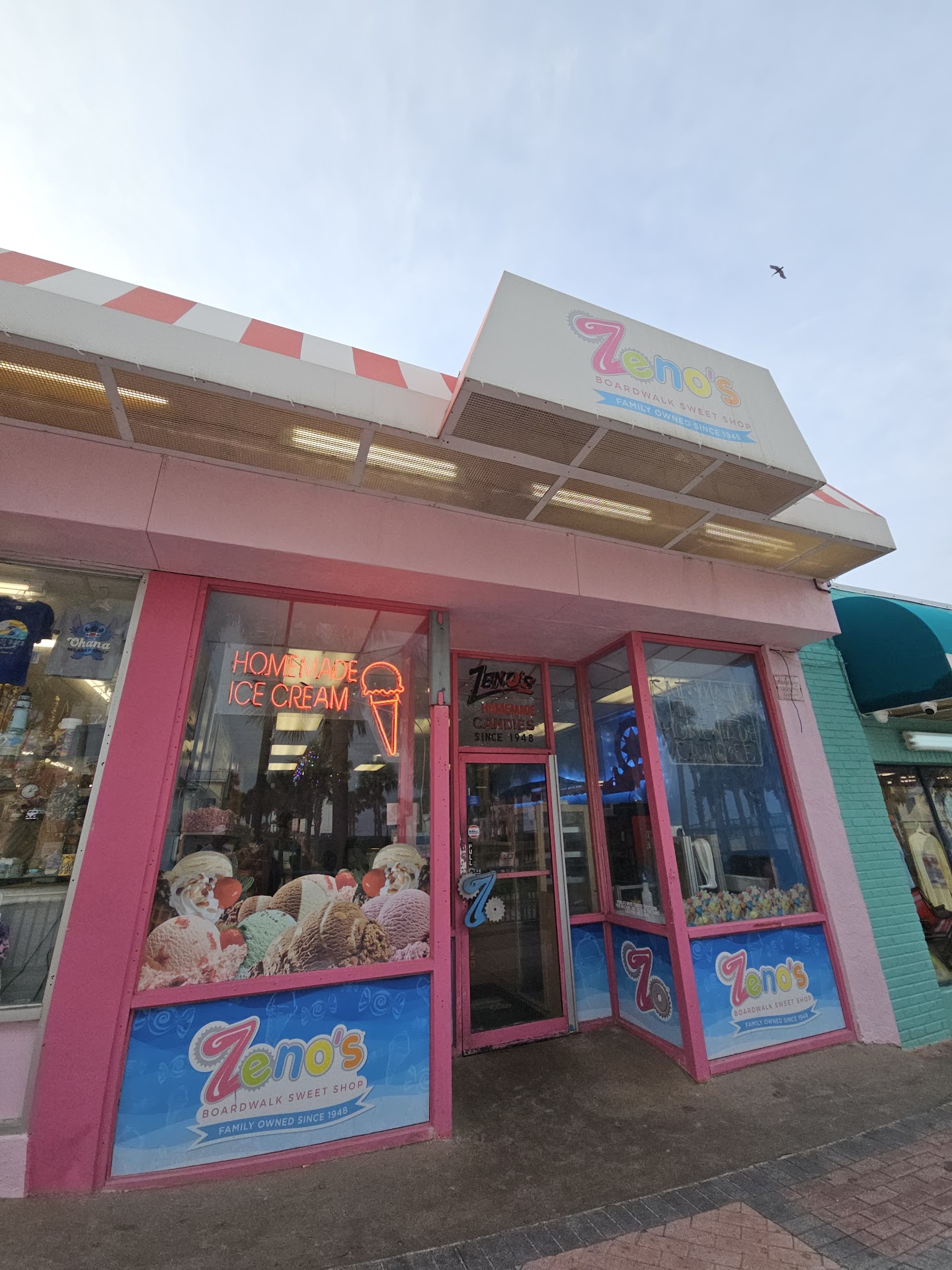 Read moreIf you’re a zealous ice-cream-beach lover, Zeno’s sweet shop will definitely have you coming back for more, I know I will! From the moment you enter the shop, aromas of assorted salt water taffy and homemade ice-cream welcome you. This shop offers over 10 ice-cream flavors, all home made! I tried carrot cake flavored ice cream paired with Caramel Caribou. The ice-cream was milky, not too sweet and just the right consistency and texture. There were 3 employees who were all busy bodies, doing their best to make sure that everyone was being taken care of. One girl who was the cashier (unfortunately I can’t remember her name) was very enthusiastic and indulged in conversation with us about the taffy and butterscotch, she seems to enjoy working there, which made the experience even better— Happy workers, happy customers. I certainly left happy, and will be back again to visit this shop. Get some mimosa, creamsicle, or even passion fruit flavored taffy while...