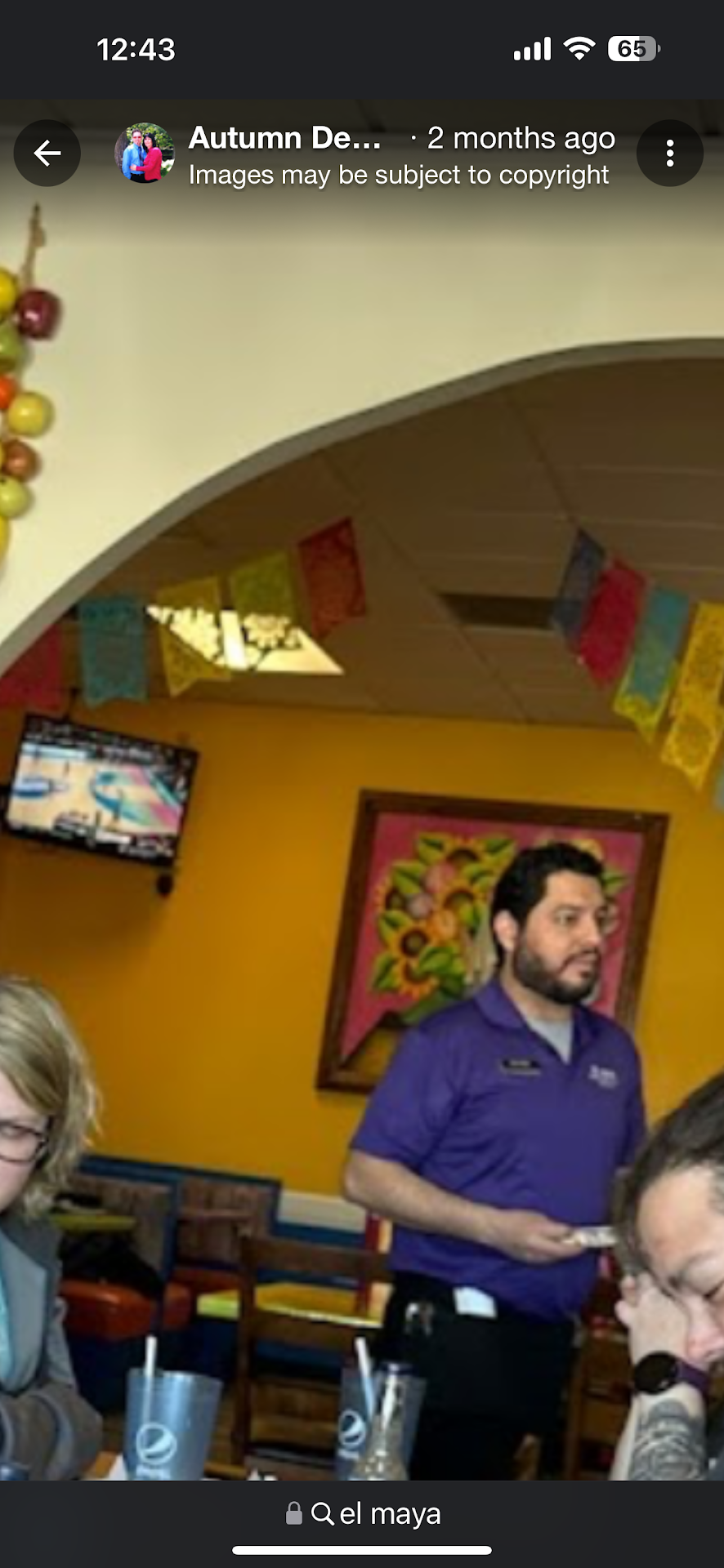 Read moreI would give 0 stars if it let me..I went to El Maya for lunch yesterday with a few ladies from work, following our last day of school. Our waiter pushed us into getting the “largest” margaritas, only to be given a major headache hours later, that’s minor beyond the point..after he sat us he asked several of times if we were all on one check, which I found to be odd that he asked more than once. But didn’t think much at that point… as we were finishing up, he took my card, and walked away to close out my bill. I did not lose my card nor did I or anyone else in my household make any further purchases since yesterday’s lunch. Today I have over $400 in fraudulent charges on my acct- several small online transactions along with a local purchase online Walmart pickup order. Clearly my acct wasn’t hacked by a random person millions of miles away. I am convinced this man took full advantage by taking down my full card info and used it as theft today. Beware- as I am probably not the first person he’s done this to, it’s something he’s most likely been doing to others. He needs to be caught and pay for these...