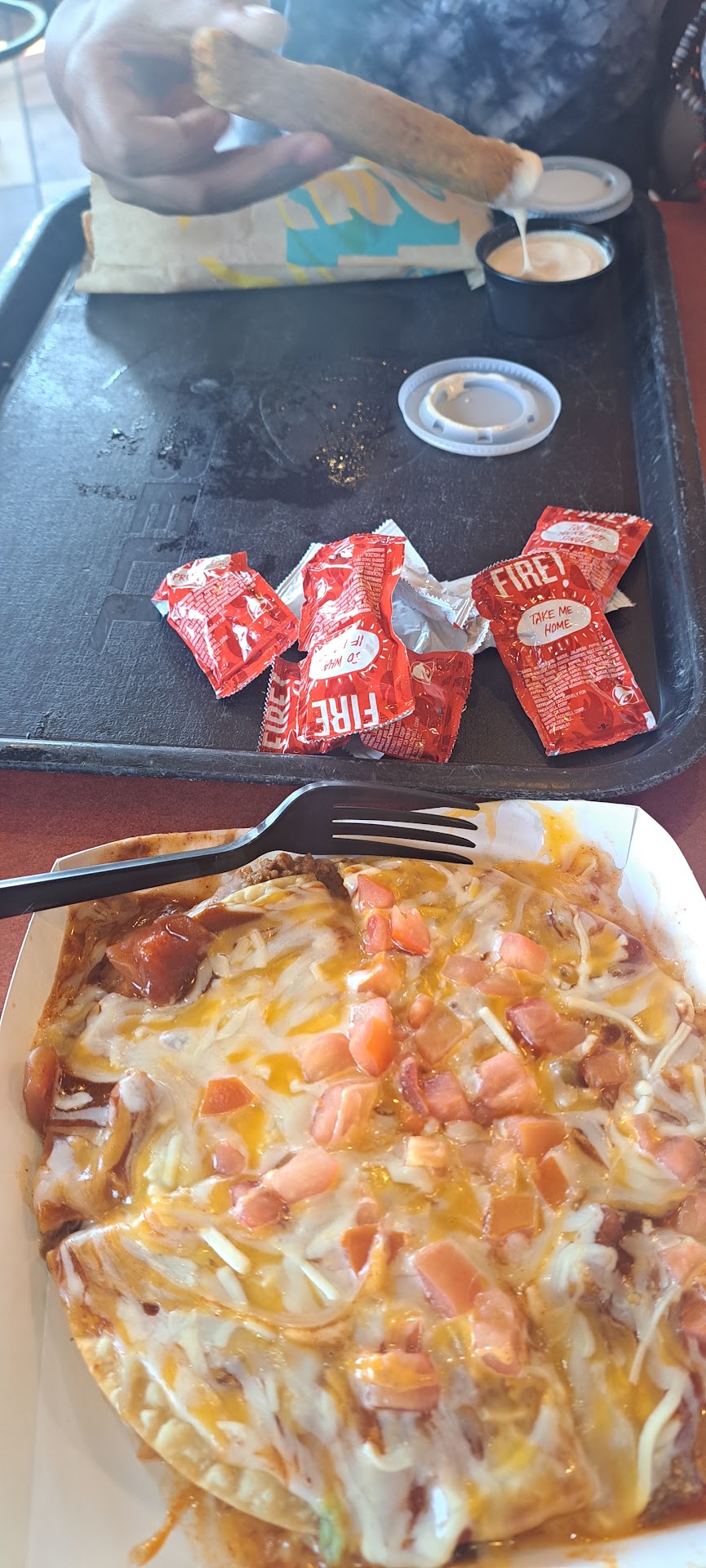 Read moreTaco Bell is receiving one star from me due to they use the lowest grade of beef a fast food restaurant can buy. Now I know that businesses are all for making money. However if you are in the customer service field then up grade your product a bit. This place is a nation wide chain so one would think they would care about what they feed to their customers. I'm not a big fan of fast food places but when I decide to go I go to places such as Wendy's Hardeys Arbys A&W Burger King etc. The reason is I know these places are feeding their customers much better grade of beef. Taco Bells beef comes in ground in 5 pound plastic bags frozen and they put the bag of beef in a big boiling pot of water and boil it in the bag and you can just see the grease flowing threw the bag. What I'm saying is with the money these places make they can afford a better grade of beef not something that is all fat and grease and high...
