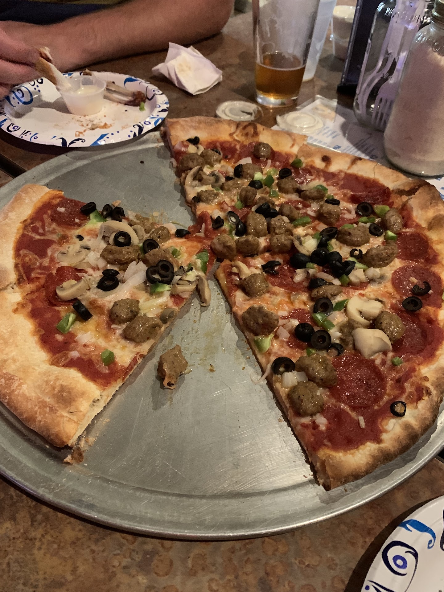 I’m giving 2 star only because the order what correct. We are visiting from another state and always try different pizza places everywhere we go. This place is in fact the WORST pizza I have ever had! The guy who delivered the pizza had the worst attitude. We paid $92 for our order and I used a credit card. I asked for the receipt to sign and put a tip on the receipt for the driver and he said that tips are cash only. I was not told that over the phone when placing the order and if we were told that tips are cash only, I would of made sure that a tip was added when the person took my credit card over the phone. While I told the driver to hang on a second so I can get cash for a tip, he said “just forget it!” and stormed off. When we opened the boxes to 3 of the pizzas we ordered, 2 of them looked like they were dropped. This is definitely a place you do not want to order from unless you want a delivery driver to deliver your food with an attitude and grease pit pizza that is...