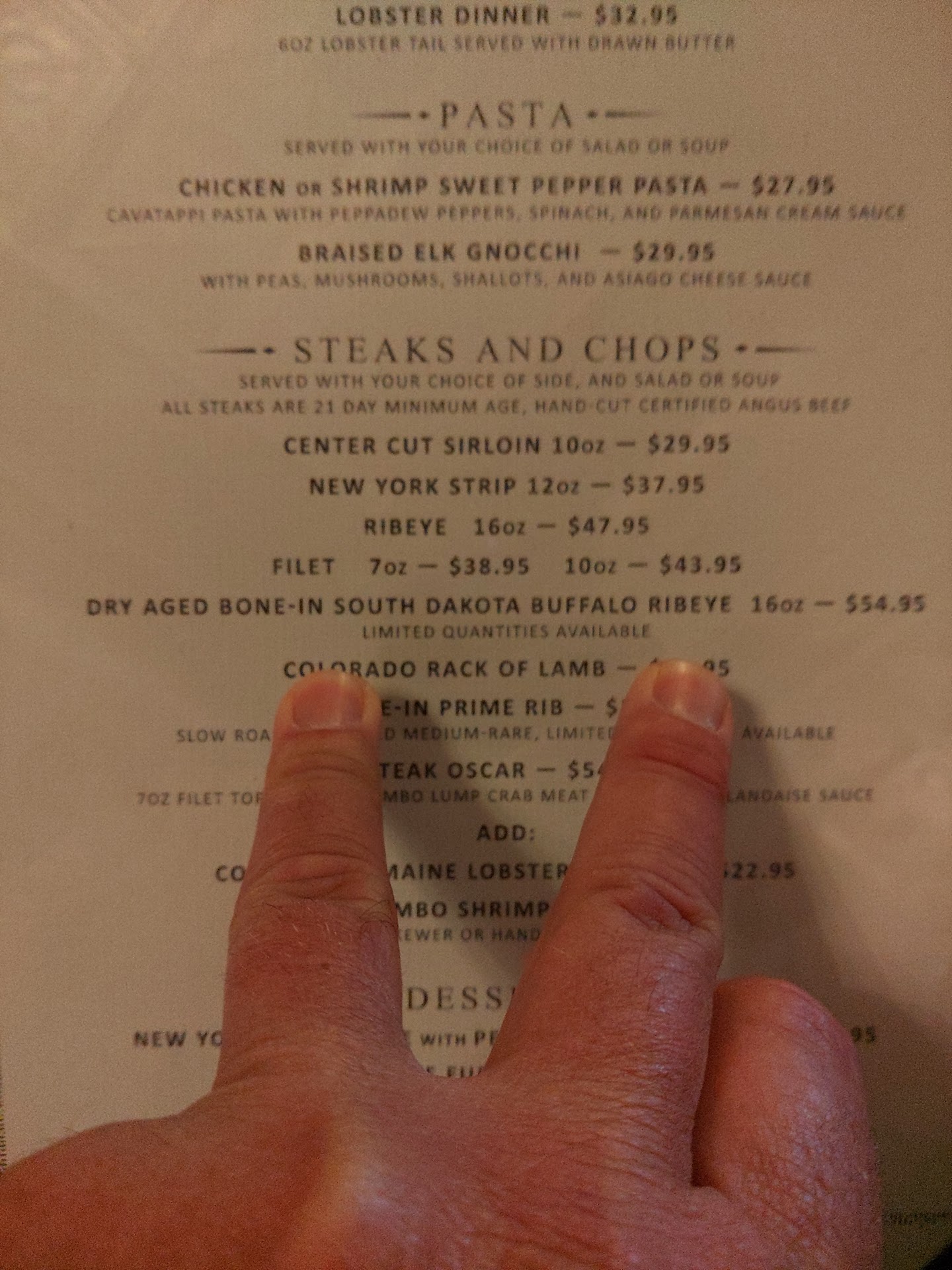 Read moreIf you are ok with the price but worry the quality may not be good, as many places around here and sturgis are, then DEFINITELY DO EAT HERE! The food! Finally! We had been looking for real, good, food, The area is saturated with mediocrity and price gouging. We had been looking for food with flavor and effort the whole time at Rally. Wed been disappointed quite a few times. But this place was recomended by a tattooer who had attended rally the last 10 years. The lobster bisque was great with a balance of sweetness and lobster chunks. I would usually make it thicker but, the lobster flavour was able to perforated throughout the soup. Excellent choice. The Ceasars salad. Probably my only disappointment. I wish all the effort had been carried through even to the salads. If this would step up slightly it could elevate the experience. The croutons were very basic. Some herbs seasoning and oil coukd help that. The dressing wasn't as remarkable as say the bisque or any if the other sauces. Even the shaved parm was just ok. In comparison to the rest if the menu it could be better. The shrimp crepe was the most surprisingly tasteful item we tried. It may sound like an oddity but wow. I was pleasantly in love. The ribeye was perfect and an excellent cut if steak. Cooked perfectly. The elk and gnocchi is a blast of flavor. This one is rich so be prepared for the combo of ot all. The caprese chicken was delicious. The chicken was very tender. The combo of flavors were balanced. The Mac and cheese side was artistic. Nice and slow combo of flavor with that final braised layer. For dessert the chocolate torte. I encourage you to try this with the coffee with rumchata. Perfect end to it and great pallete cleanser. The effort in food, service, and knowledge of the food amongst staff was refreshing in an area that seems to just put a high price on everything but their own pride in service and technique just because they can. All in all this restaurants quality is the same if not better than restaurants of equal quality in much larger areas....