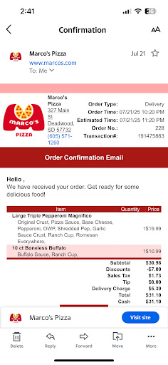 So hereâs the sitch: I ordered from Marcoâs in Deadwood. Almost $50 worth of food. Youâd think I was ordering a Michelin-starred feast with that price, right? Nope. Just wanted some pizza to show up reasonably warm and on time.