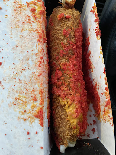 I have been riding by this place for months and tonight I finally stopped. Very disappointed 😞 I did not receive an "A1" experience. Upon approaching, I greeted with a hello and smile and was not greeted back, just asked what my order was. Even after getting my food, I said Thank you! Have a good night! Crickets Hence the one star for service. I can't necessarily rate the atmosphere. It's a food truck but it's clean and the parking lot is as well. Anyway, I got the Hot Cheetos Corn dog and the Potato Korean dog both with half and half. I picked up the Hot Cheetos dog and literally most of the Cheetos crumbs fell off immediately all over the place (in my lap, down my shirt, on the floor, etc). At first I was upset, but after biting into it, I realized that was a favor for me. The cheetos had no flavor or taste, as if they were stale and had been out for days. No spice what so ever. Also my dog was mostly cheese. Instead of half and half it was more like 3/4 cheese and 1/4 hot dog. However the cheese was very tasty and gooey and the Hotdog firm and Juicy. Moving on to the Potato dog. Blah!!! That was the WORST! Tasteless potatoes stuck to doughy breading! I peeled it all off and just ate the cheese and Hotdog which this time was actually half and half. Again cheese was gooey and fresh and Hotdog very tasty. Also the food was nice and hot. This is why they are getting 2 stars. I will definitely not be back for a chance to waste another $22! I will be going back to Two Hands Corndog! They are delicious and worth the 30...