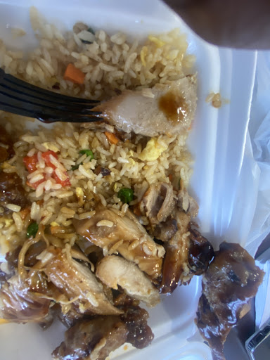 Basically you pick a base starch (white, brown, fried rice or noodles) and then whatever protein you want on top of it.