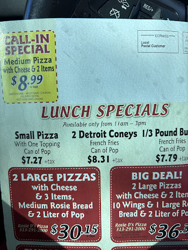 Read moreEdit: I originally enjoyed this place enough to drive 10-15 minutes to pick it up. I'm going on like 3 times now though that they've screwed up my order, and I'm done with Rosie D's. They've always done a terrible job in correcting their problems, but this time was the worst. They put a super spicy flavor on our crust which I didn't realize till I got home and opened the box. My kids can't eat that, and nor do my wife or I care to. When my wife called to get the issue fixed, they had to go back and forth for a while before offering to remake the order but they essentially stated it would take an indefinite amount of time because of the number of orders. It's like they wanted us to just give up on it and take what we got. I was already on my way to pick up the order when my wife let me know this was their response. I decided I'd just keep going and get the order refunded. When I got there I said I wanted my whole order refunded since the chicken and bread sticks would be cold before we got other pizza to have it with (let alone the total waste of my time) and the "manager" said he would only refund the pizza because I didn't have the other stuff there. I left the pizza there and told them to keep the money. I own a small restaurant, and if someone screws up an order, we don't do the bare minimum to resolve the issue, or try to burden them out of getting it corrected, we go above and beyond to make it right and bring them back. You guys needs some serious training. I will not be back to Rosie D's. Original:Good pizza, good...