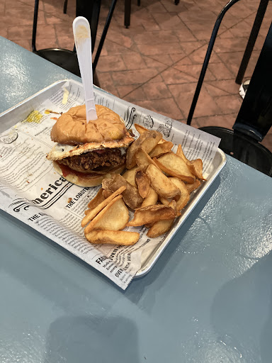 Establishment is very Clean to the T::: Chef Hass was in the facility and greeting all incoming traffic and checking up on tables ::: Glimpse of him high fiving little customers of his as they endulged in their happy Face fries shows humility . Conversation’s between the tables showcased lots of happy bellies 😊 and faces.