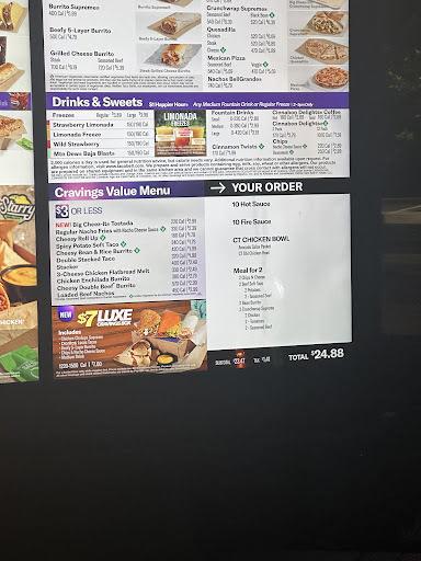 Read moreWhile their lobby smelled of musty mop water walking in and got a few whiffs during the wait, their drive was down you had to try to find a parking spot and go in with limited parking during rush dinner hour on either side of a one way Telegraph, once inside the staff informed you while ordering them, that they don't have nacho fries yet (even though they started advertising them on the menu) and they are running behind even up to 30 minutes. The guy at the front was attentive even though they had a full lobby they were serving, one guy said his wait was about 10 minutes and wasn't bad. The lobby was clean even after the rush they had, the food was good and worth the wait, free WiFi while I put my feet up. They were working hard back there. And apologized for the wait I overheard them say to another customer. I didn't mind, it was shorter than if I cooked at home. Ended up being 20 minutes, but the dew was good, I left satisfied. Decor was other standard upgraded yet retro art of taco bells I have visited some similar to their art with the high tables like in Findlay and Monroe. If I had more time to wait to visit a nearby friend that wasn't home yet, I'd...